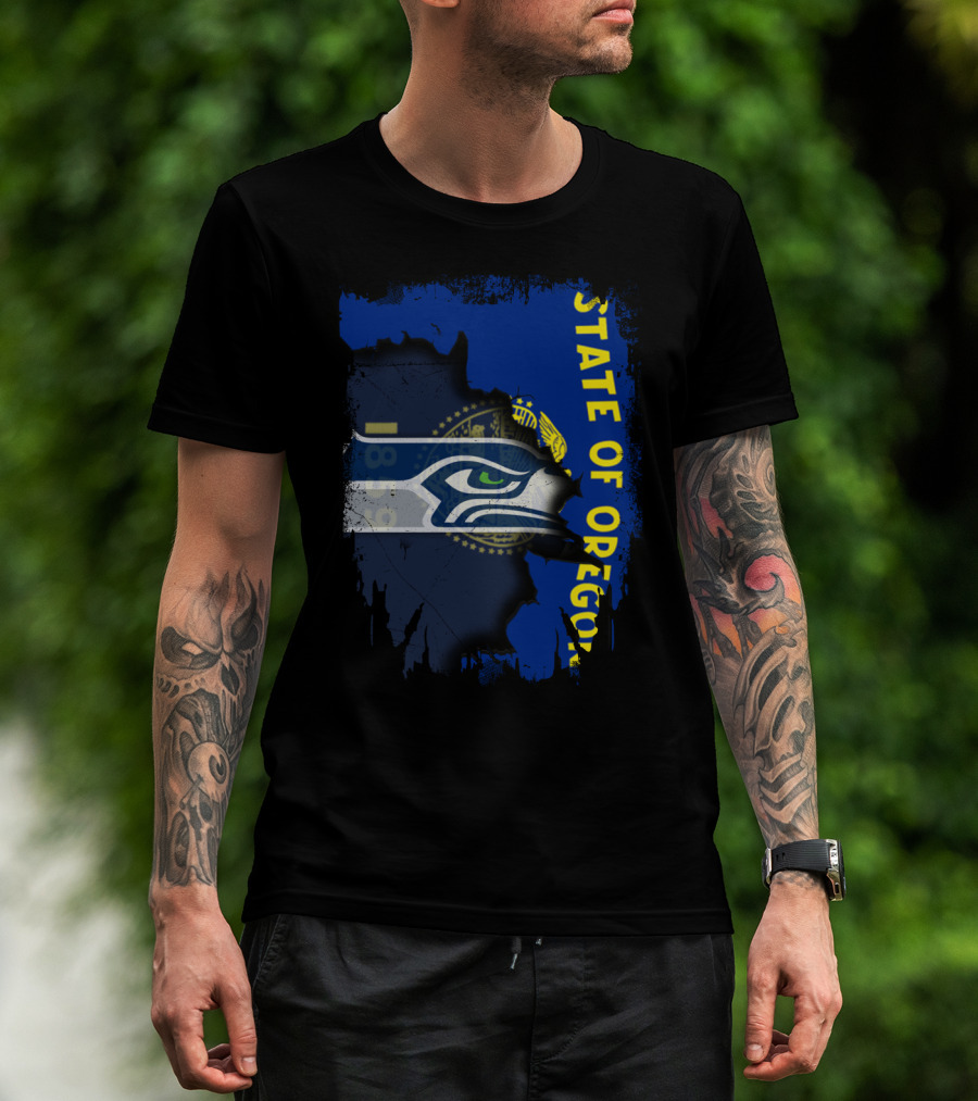 State Of Oregon With Seattle Seahawks T-Shirt