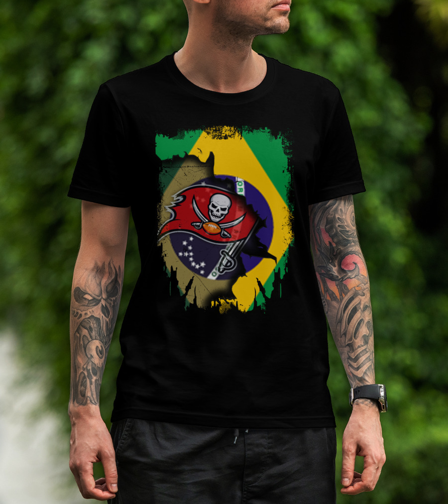Brazilian Flag And Buccaneers Logo Fusion T-Shirt