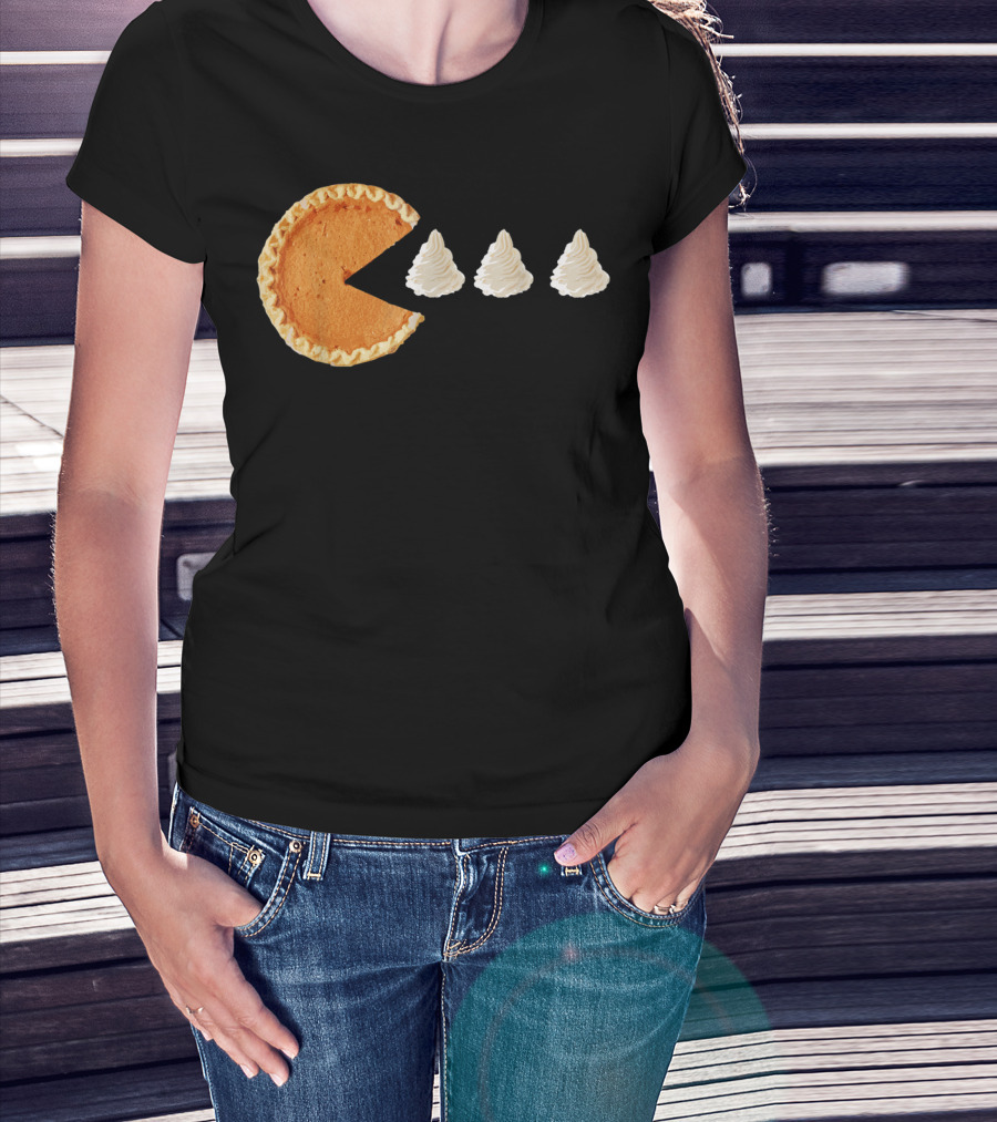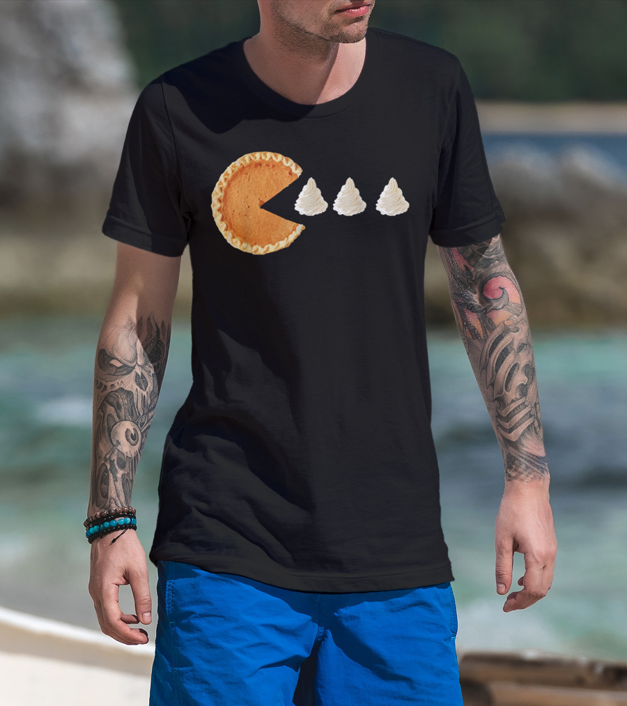 Pumpkin Piece Thanksgiving Day Video Game Pie Whipped Cream Chase T-Shirt
