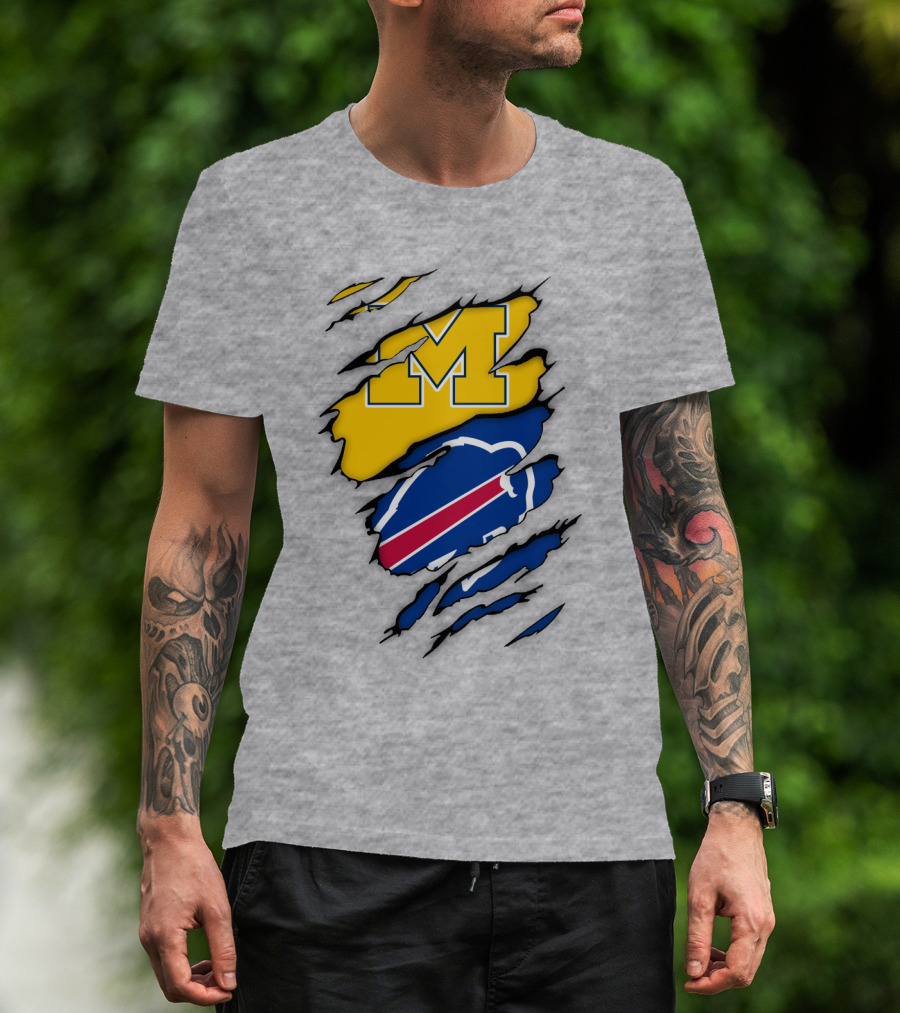 Michigan Wolverines Buffalo Bills Ripped T-Shirt