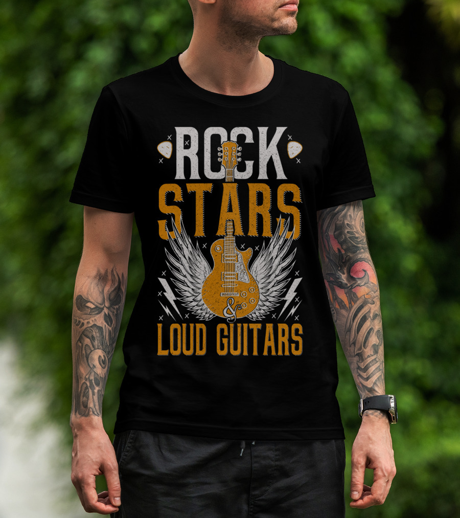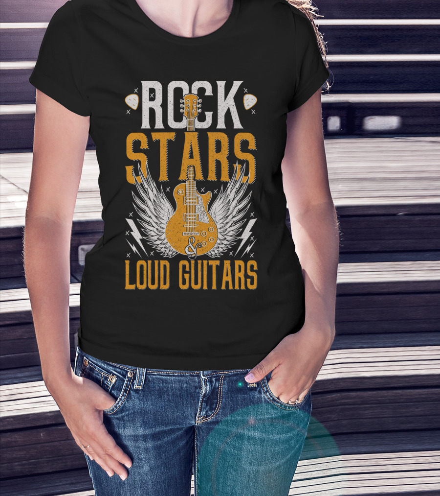 Rock Stars And Loud Guitars Vintage Classic Wings Electric Guitar T-Shirt