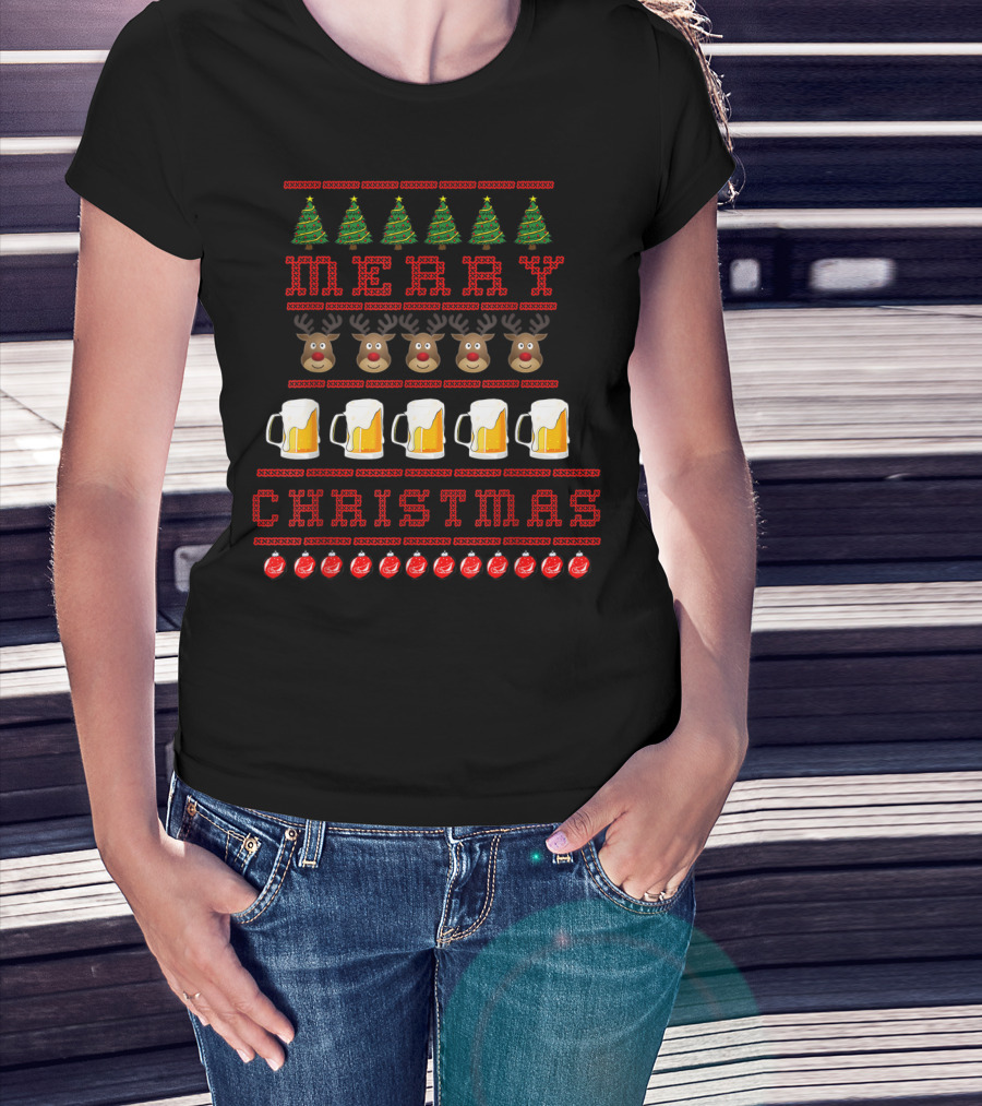 Merry Christmas Reindeer Beer Festive Ugly T-Shirt