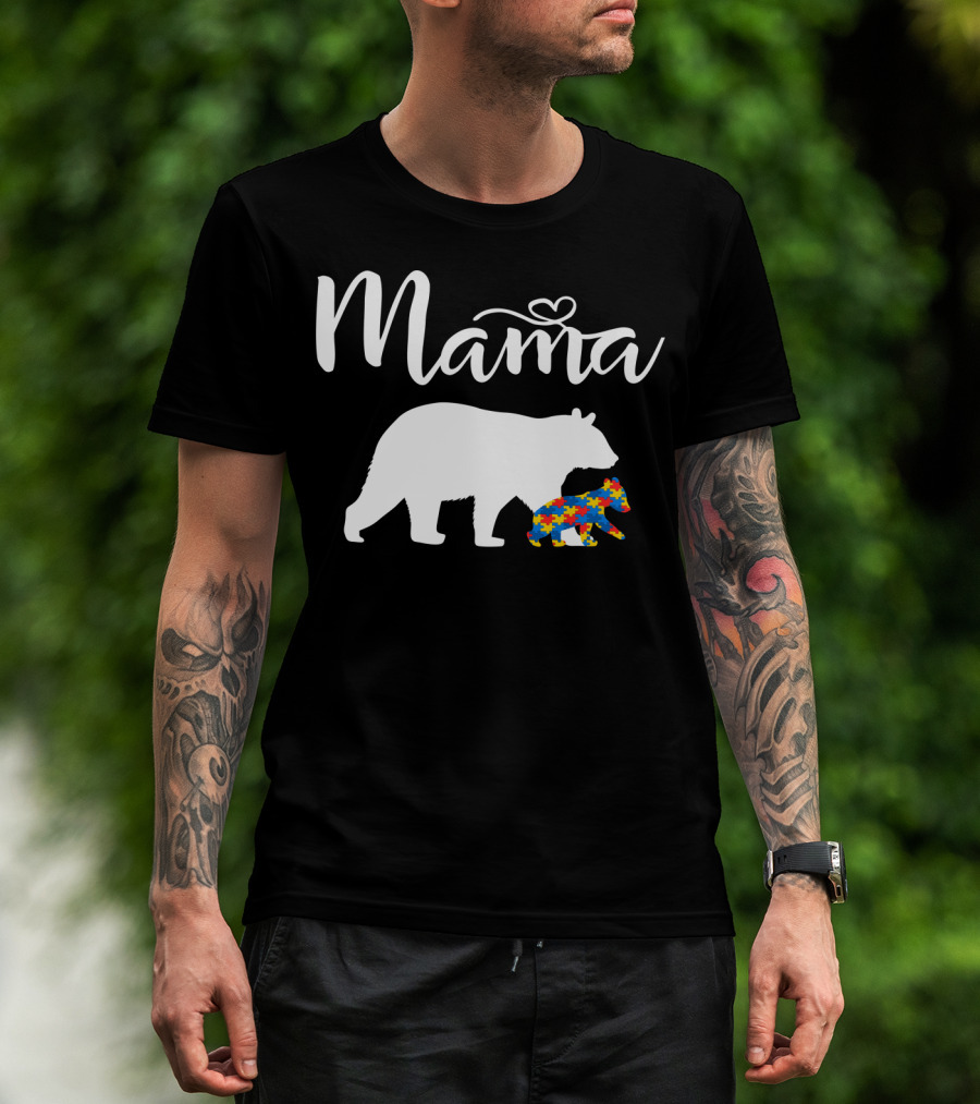 Mama Bear Heart Autism Mom Puzzle Cub24 T-Shirt