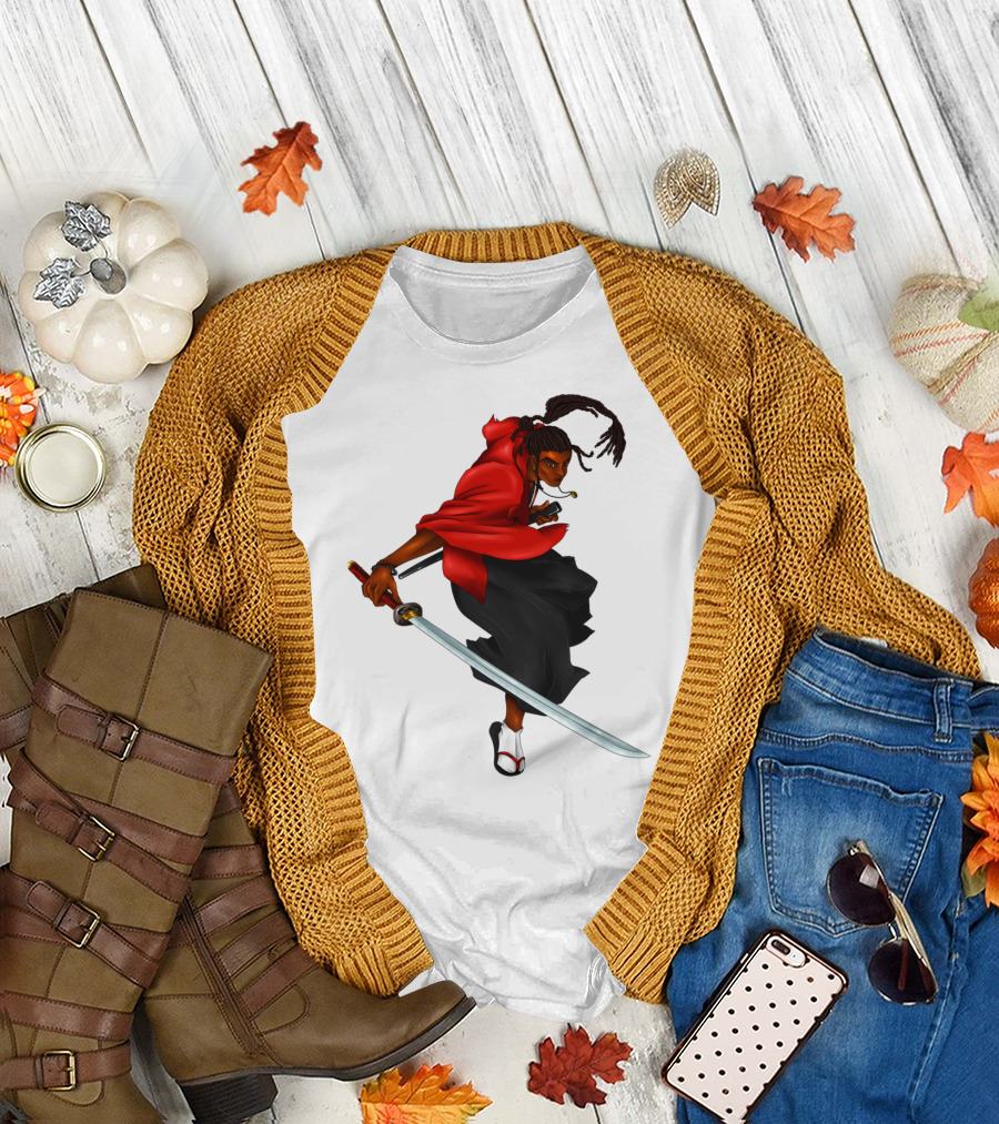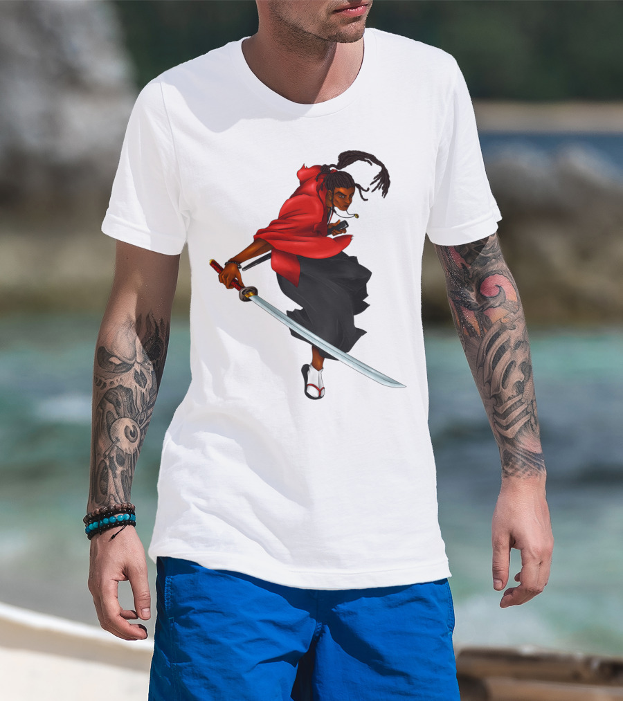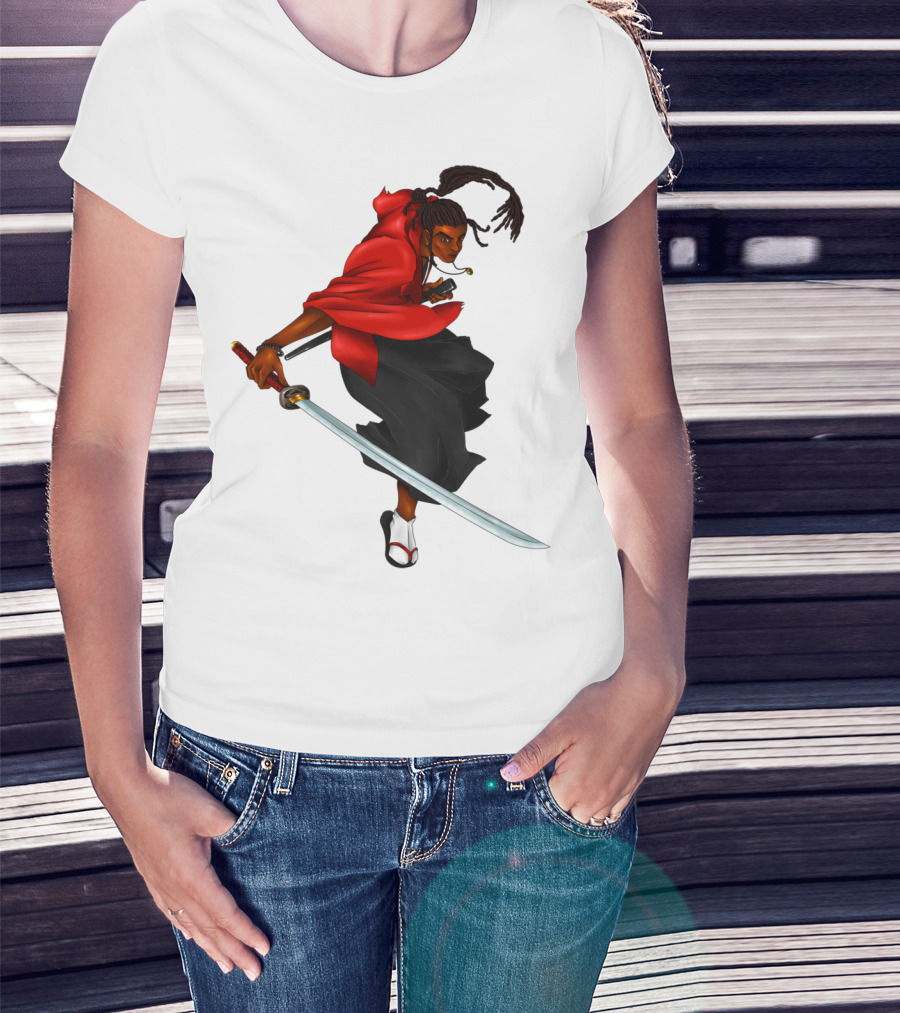 Blck Ronin Heroic Samurai Warrior In Red Cloak With Sword T-Shirt