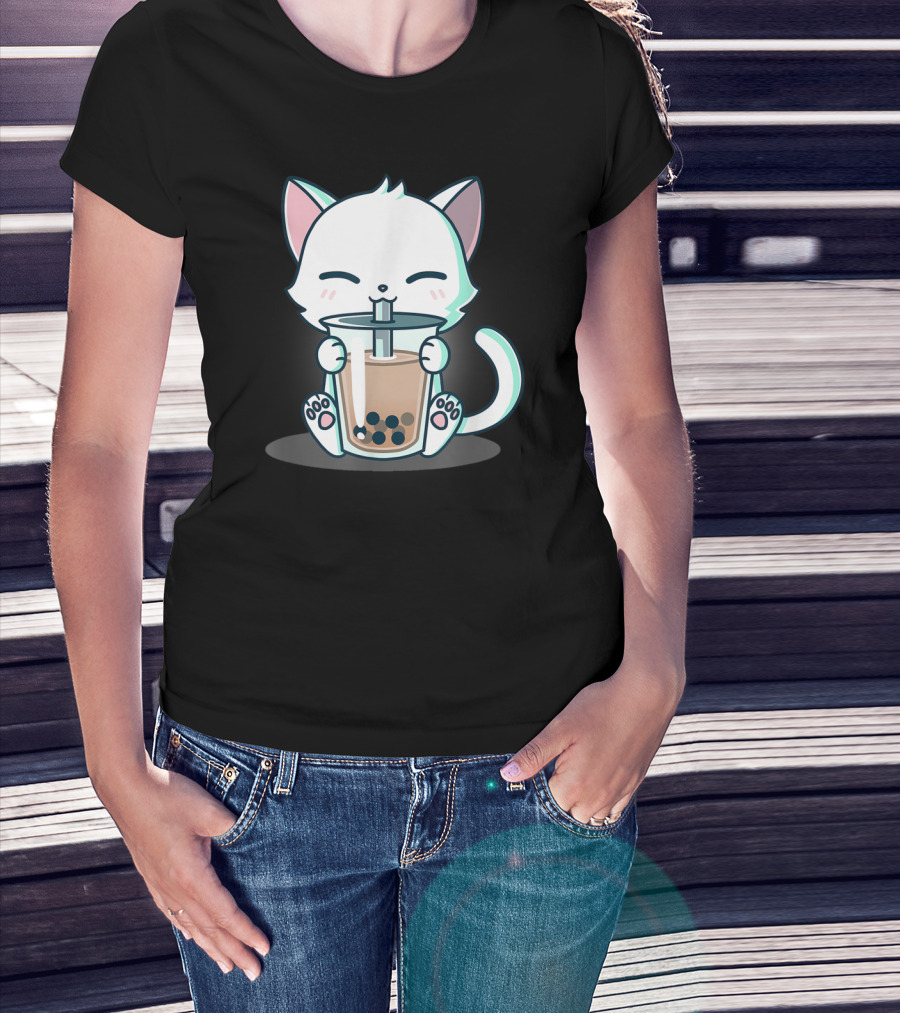 Kawaii Boba Cat Happy Kitten Drinking Bubble Tea Mood T-Shirt
