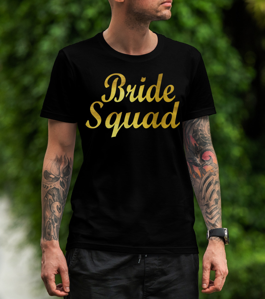 The Bride Squad Team Bride Squad T-shirt is designed for everyday wear and a consistent fit. Fabric is pre-shrunk ring-spun cotton with durable stitching. See the size chart below for exact measurements.