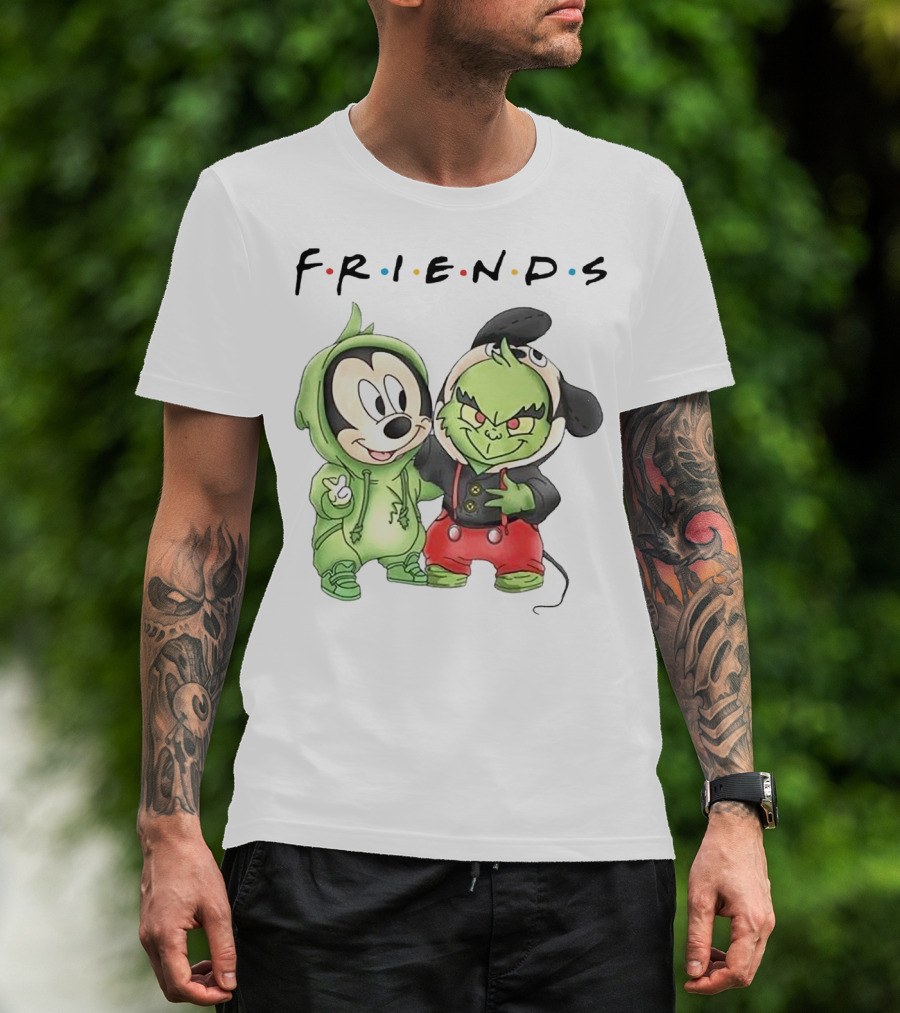 The Friends Grinch Mickey Mashup T-shirt is designed for everyday wear and a consistent fit. Fabric is pre-shrunk ring-spun cotton with durable stitching. See the size chart below for exact measurements.