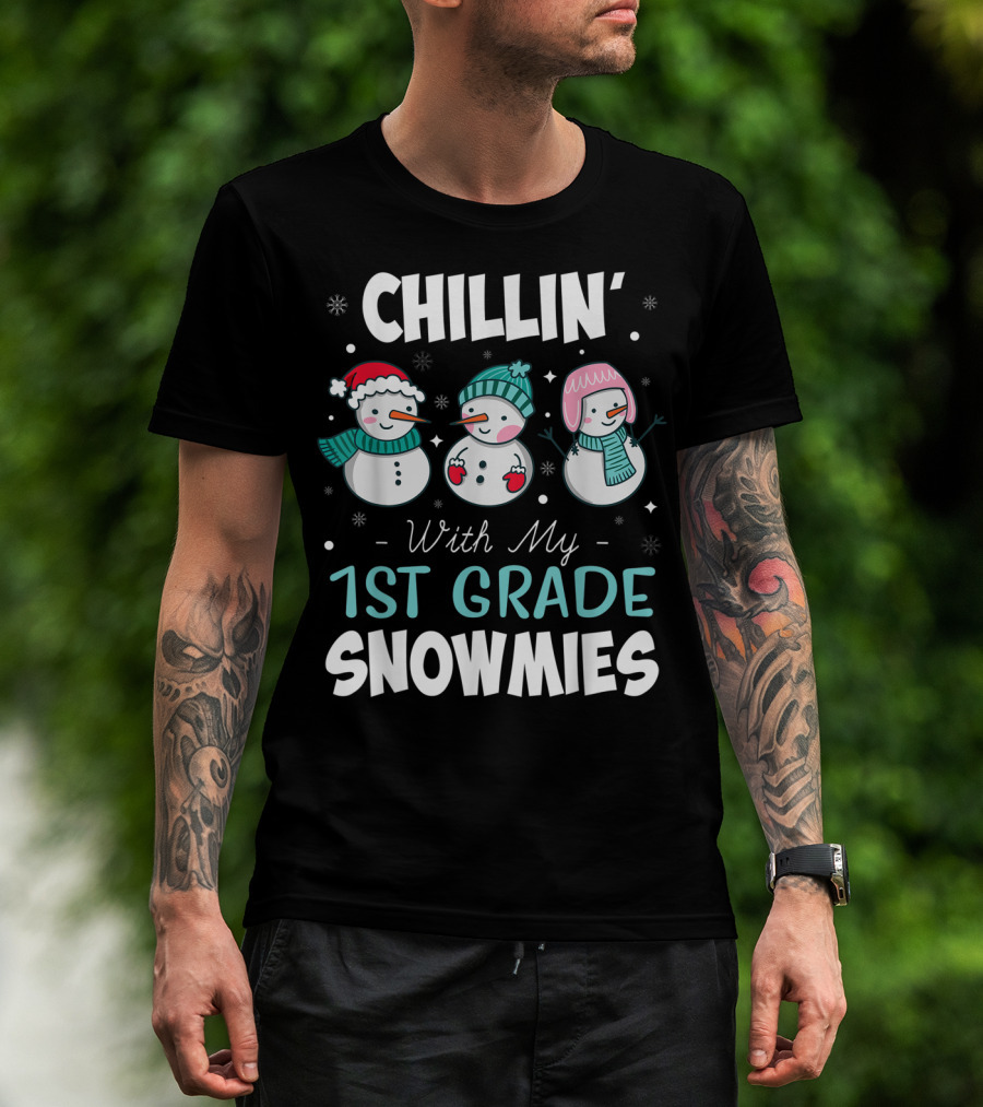 Chillin' With My 1st Grade Snowmies Teacher Snowman Friends Winter Fun T-Shirt