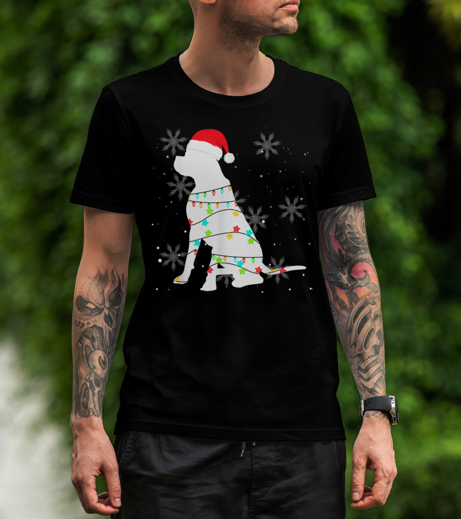 Christmas Lights Boxer Santa Hat Snowflakes T-Shirt