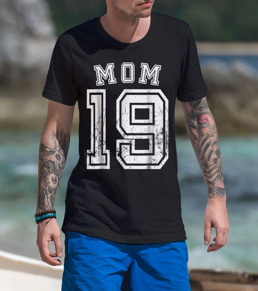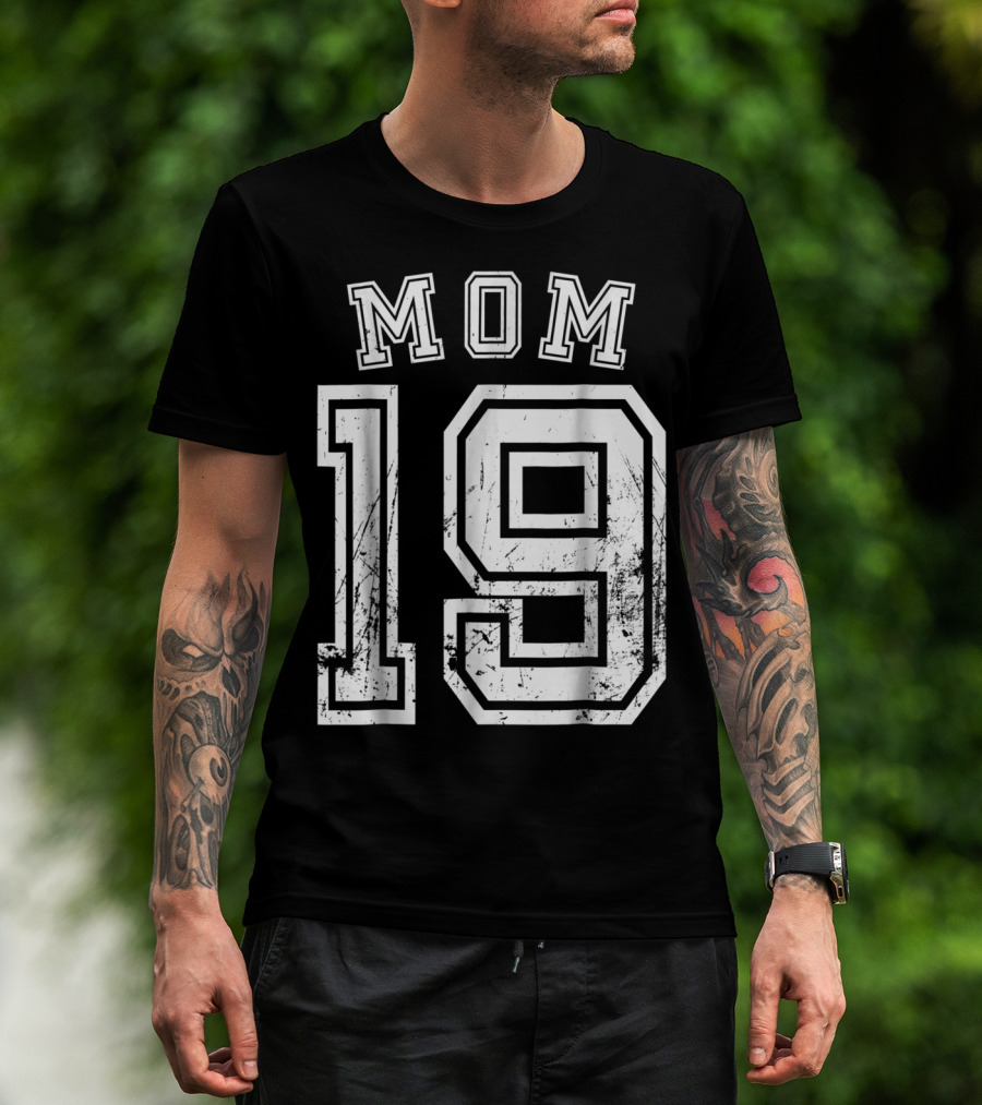 Mom 19 Nineteen Soccer Hockey Football Softball Team Sports Number T-Shirt