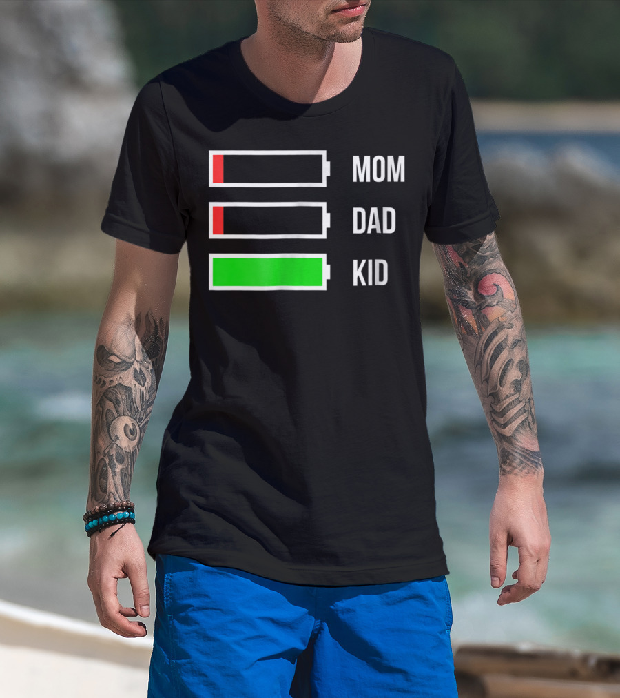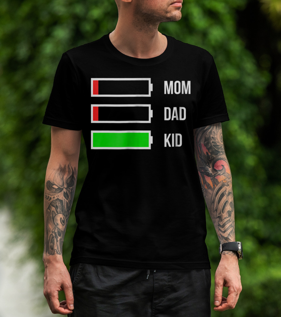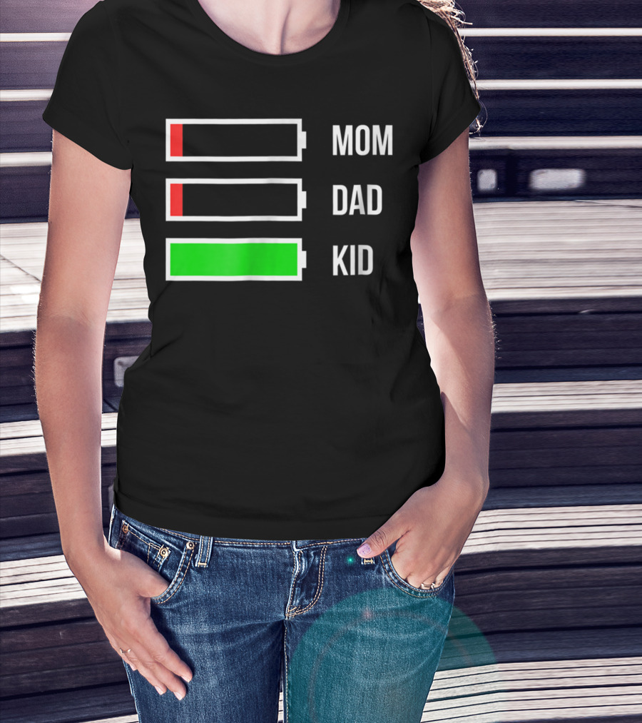 Mom Dad Kid Energy Battery Levels Stressed Out Parents T-Shirt