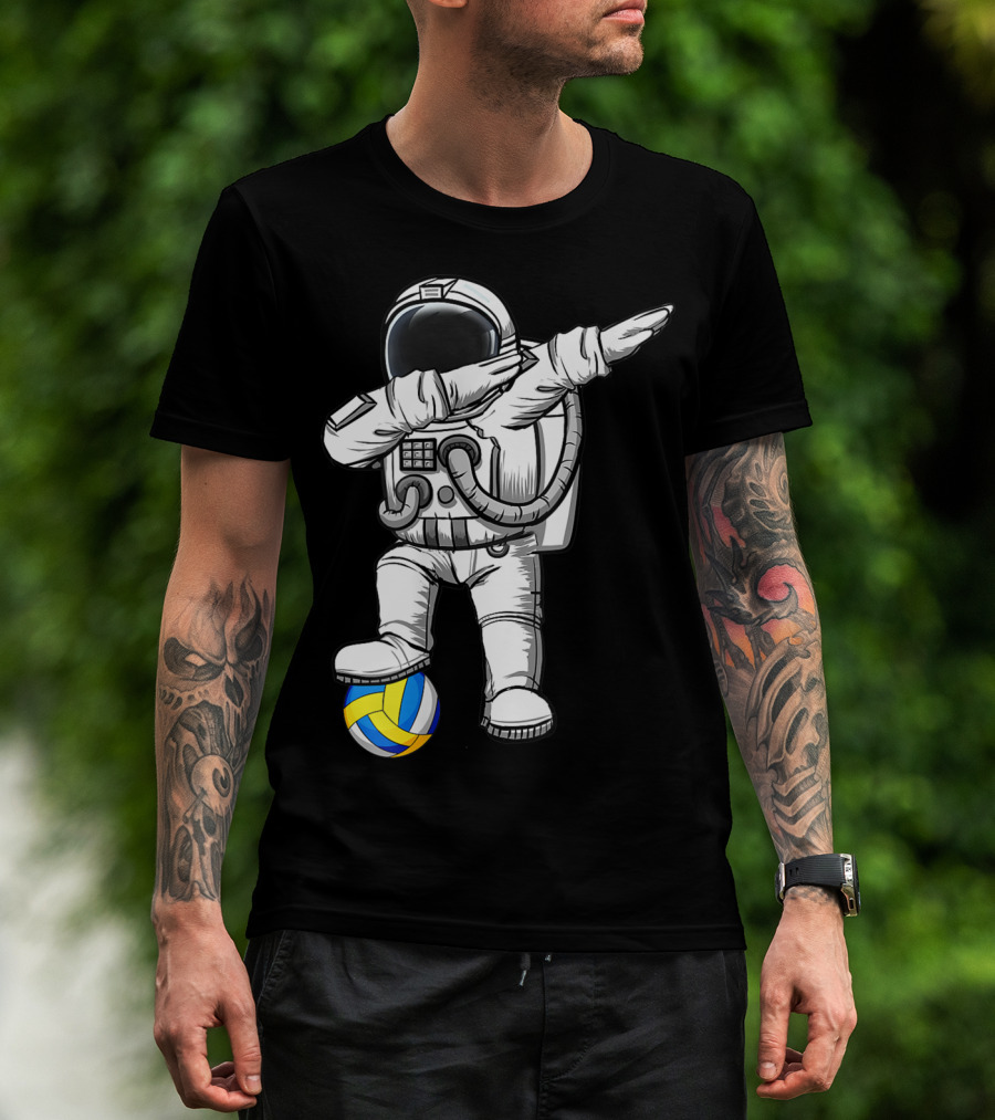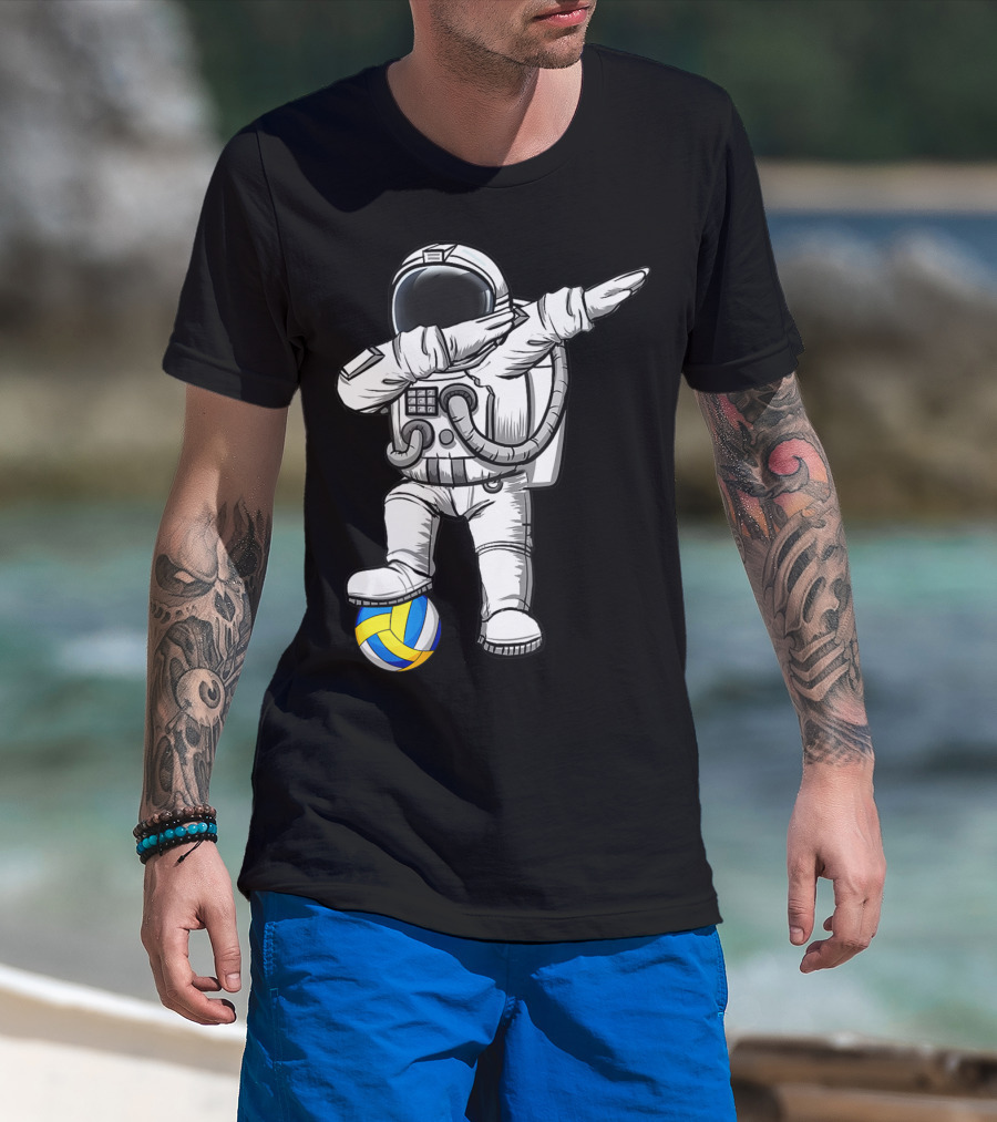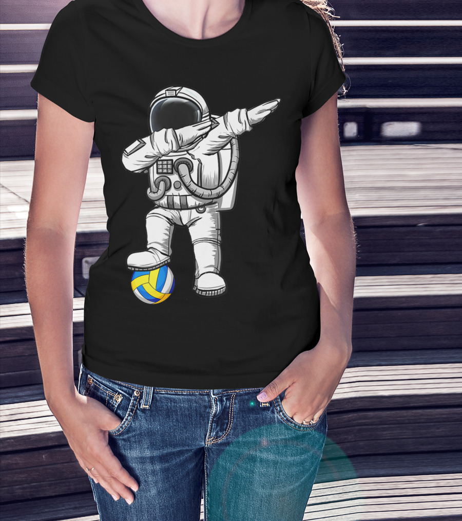 Cute Astronaut Dabbing With Volleyball Astronomy Lovers Galaxy T-Shirt