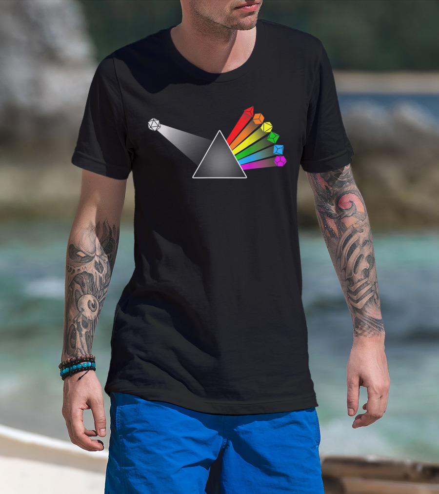 Diceside Of The Moon D20 Dice Set Tabletop Prism Design Multicolor Spectrum T-Shirt