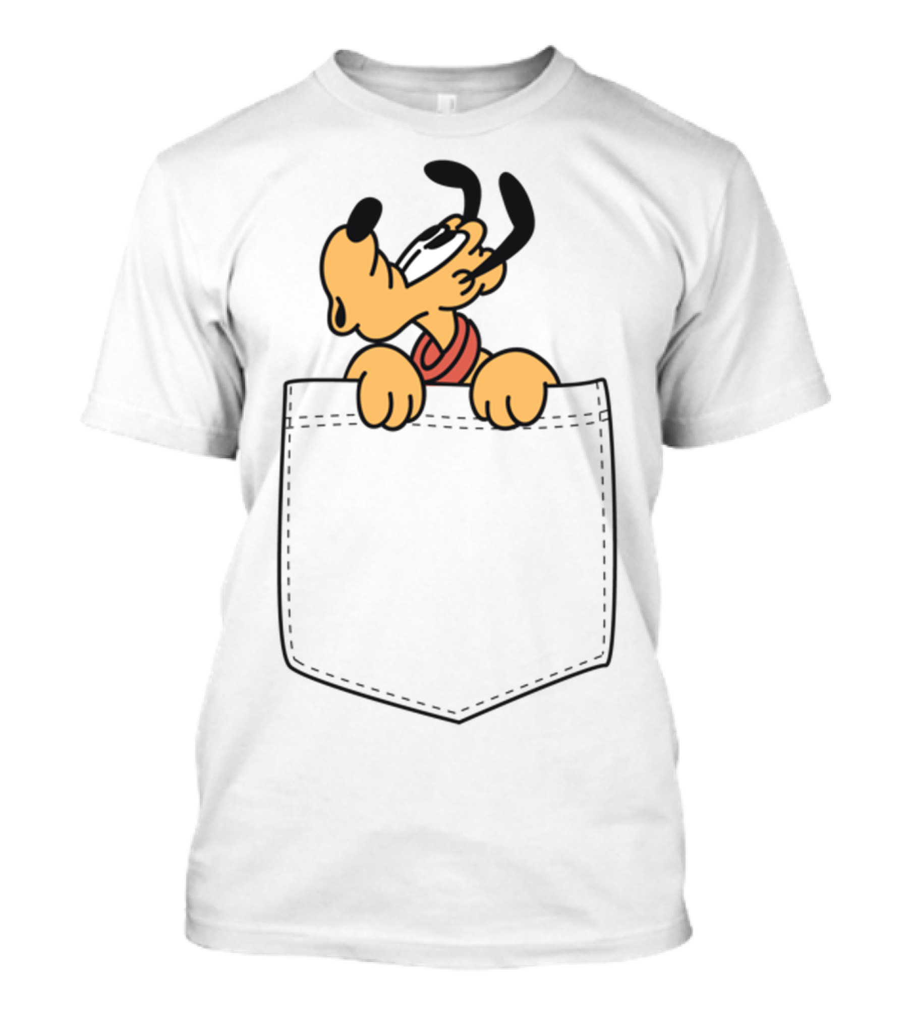 The Disney Pluto Peeking from Pocket T-shirt is designed for everyday wear and a consistent fit. Fabric is pre-shrunk ring-spun cotton with durable stitching. See the size chart below for exact measurements.