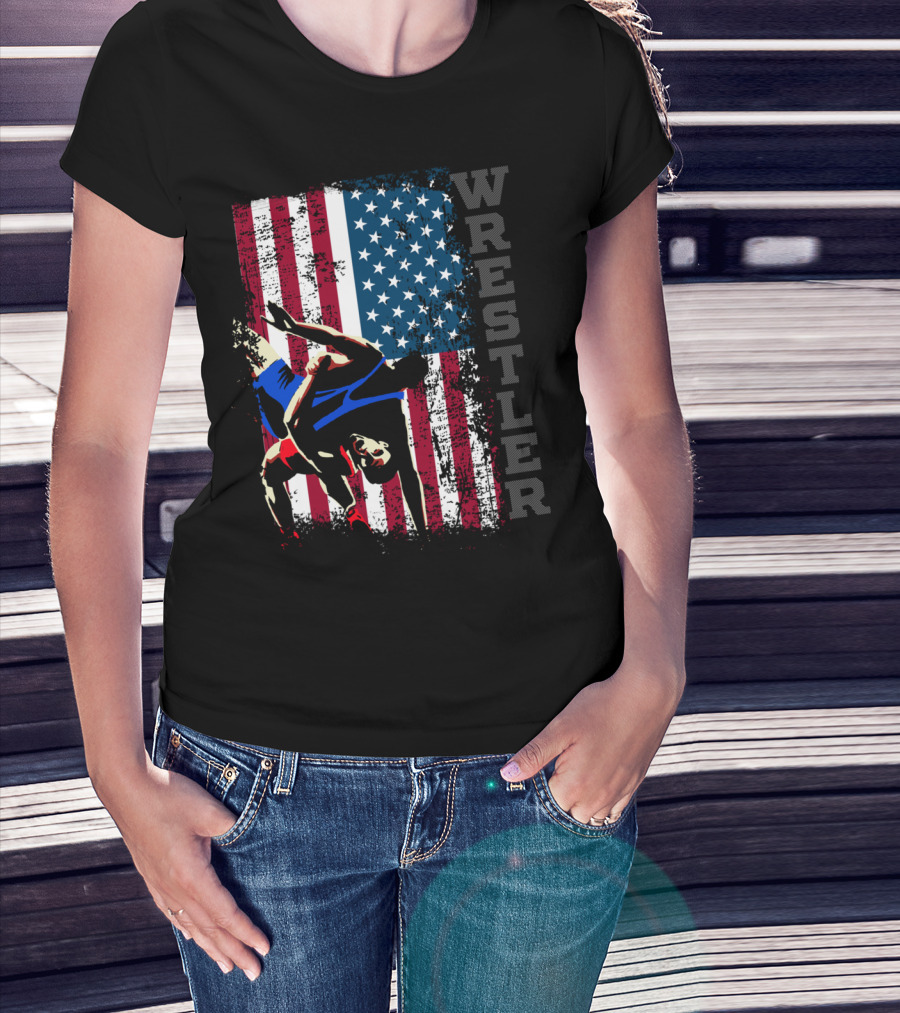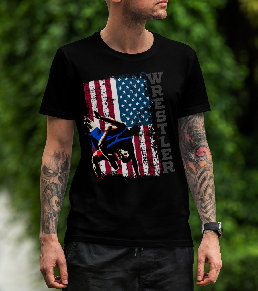 Wrestler Distressed American Flag Wrestling T-Shirt