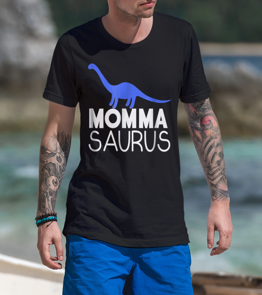 Mom Momma Saurus Blue Dinosaur Family Tribe Matching T-Shirt
