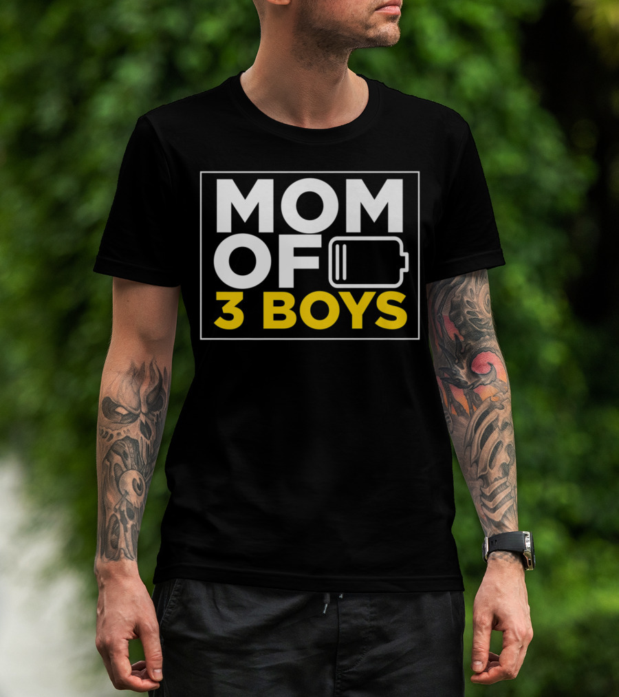 MOM OF 3 BOYS Low Battery Christmas From Son T-Shirt