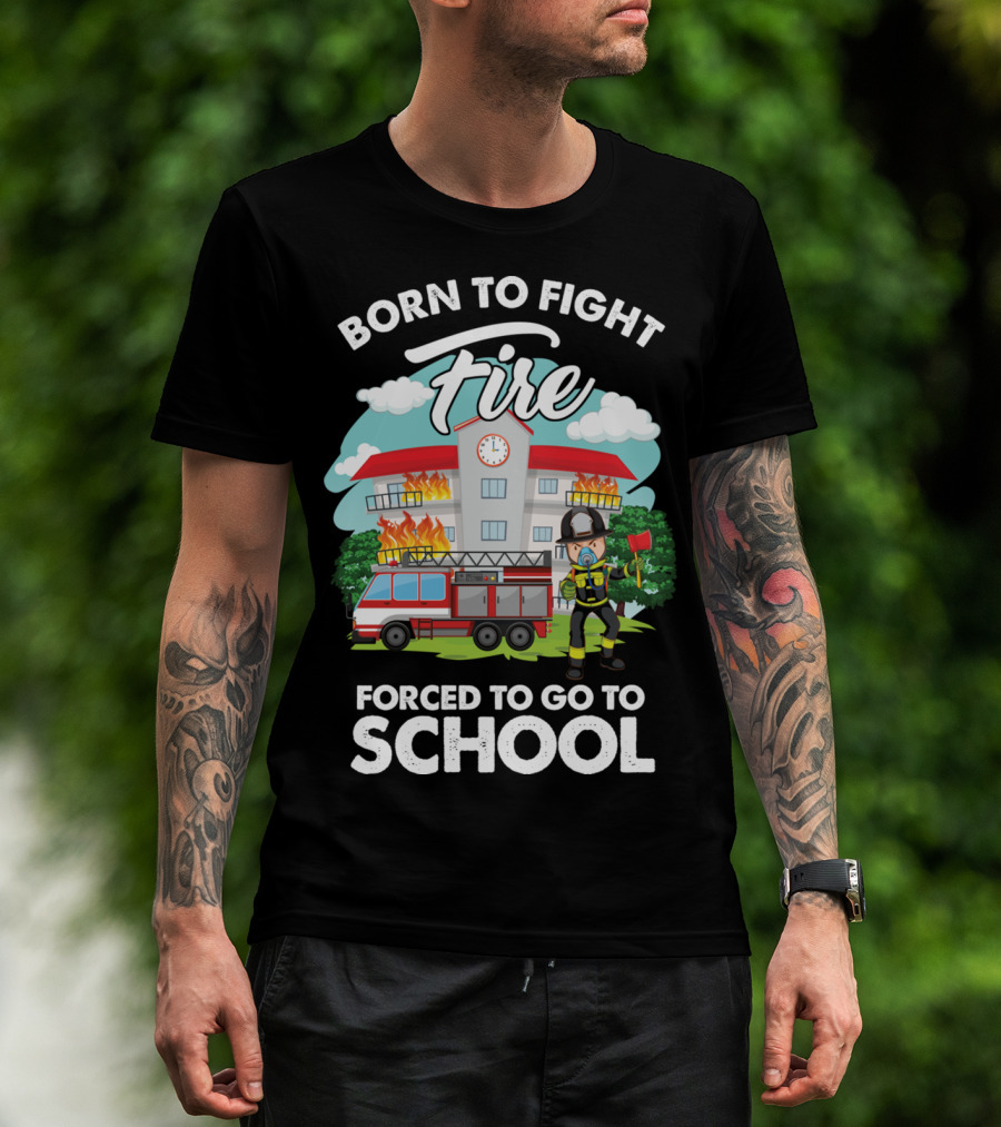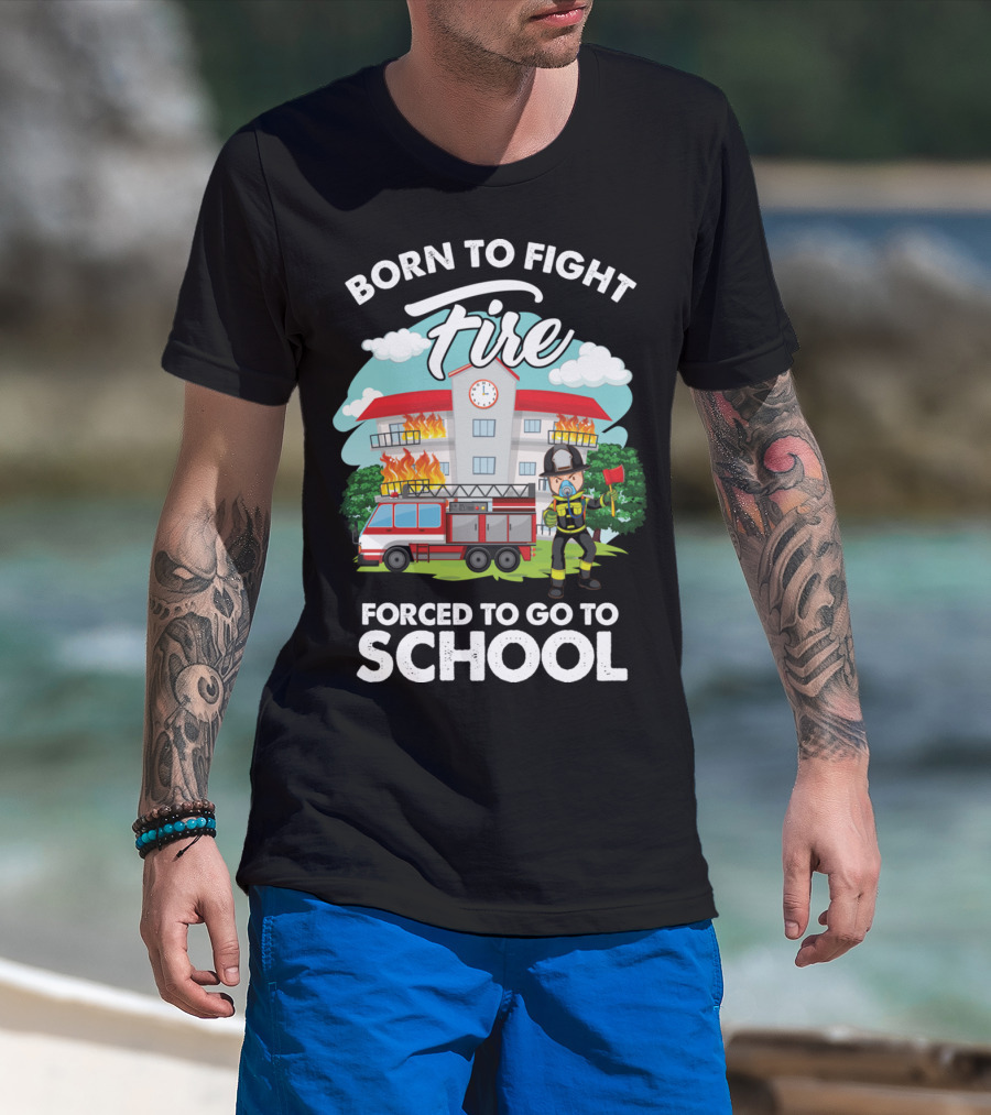 Born To Fight Fire Forced To Go To School Fireman Firefighter Department T-Shirt