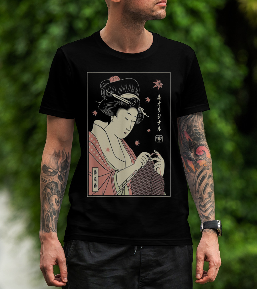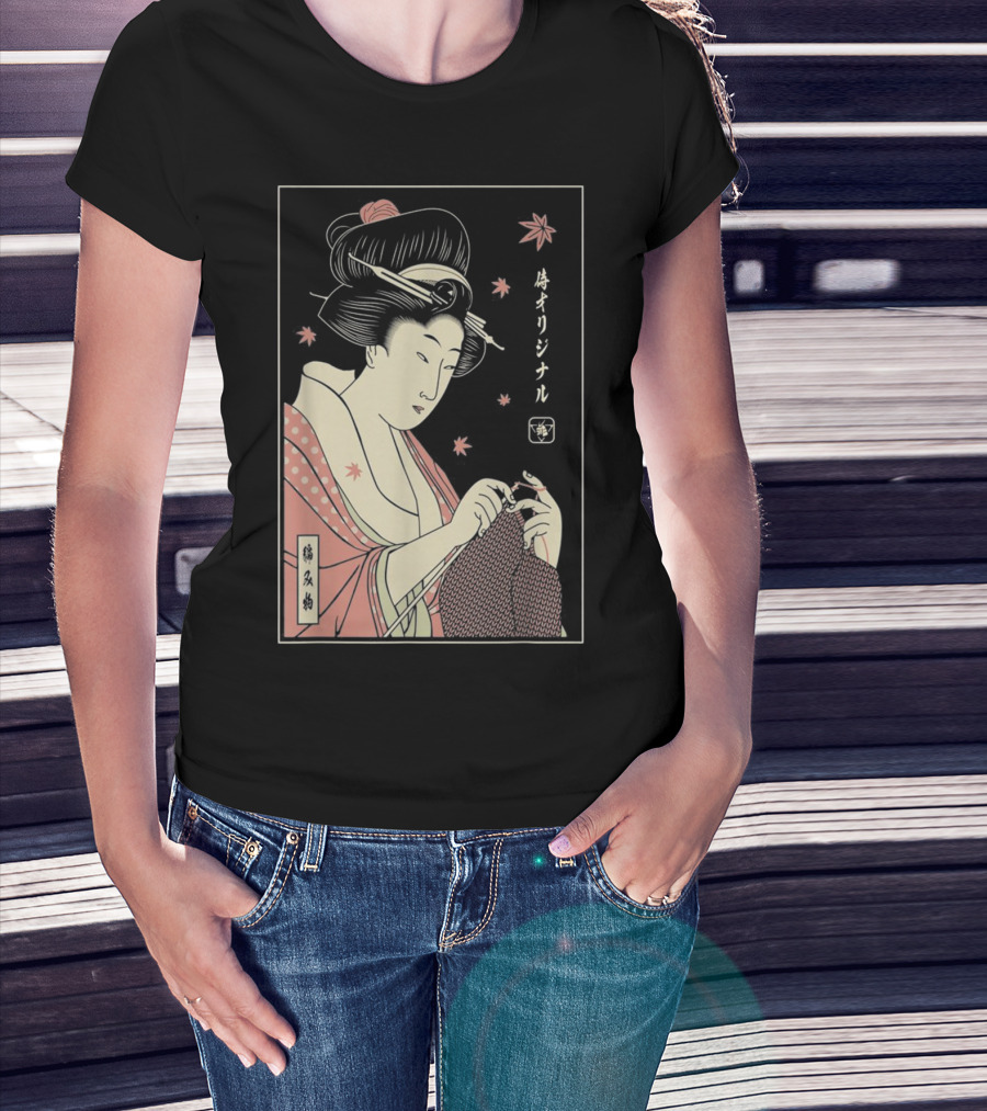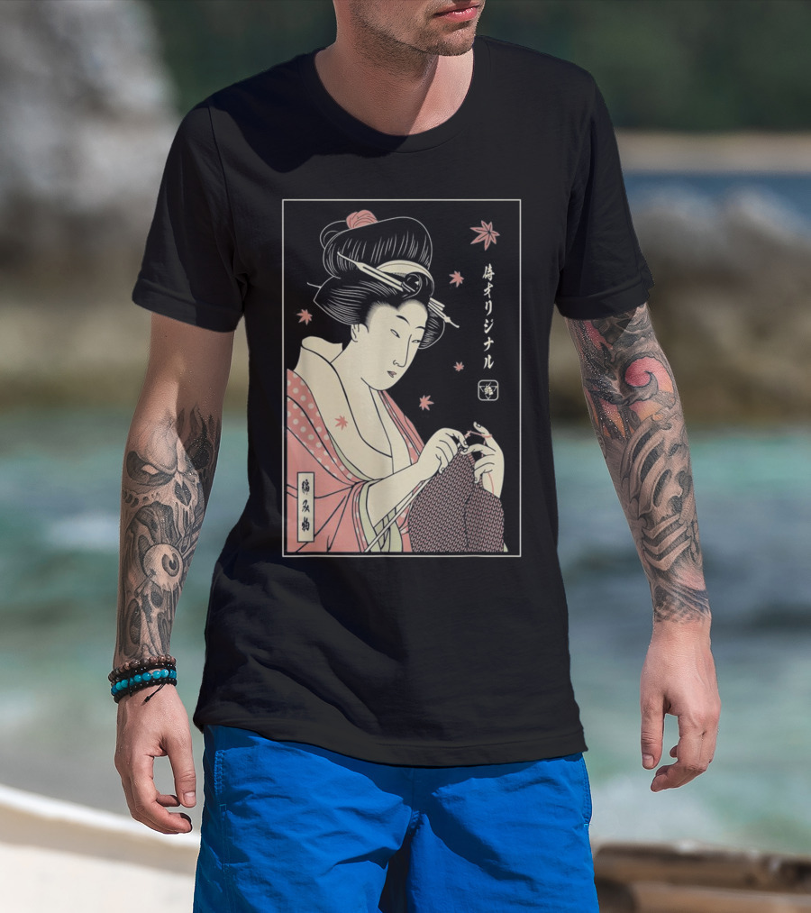 Funny Geisha Knitting Samurai Japanese Lover Ukiyo-e T-Shirt