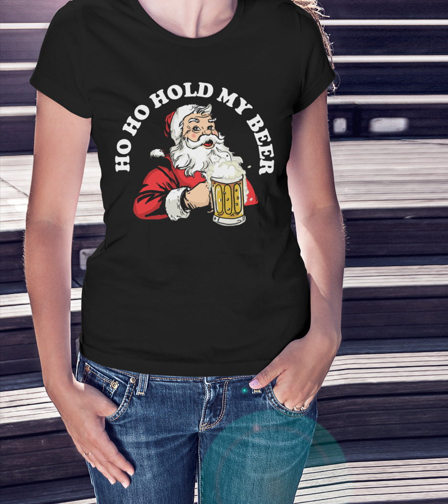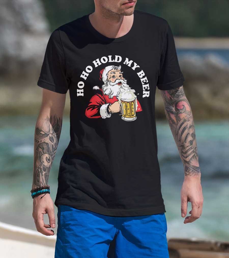 Ho Ho Hold My Beer Funny Santa Claus Christmas Mug T-Shirt