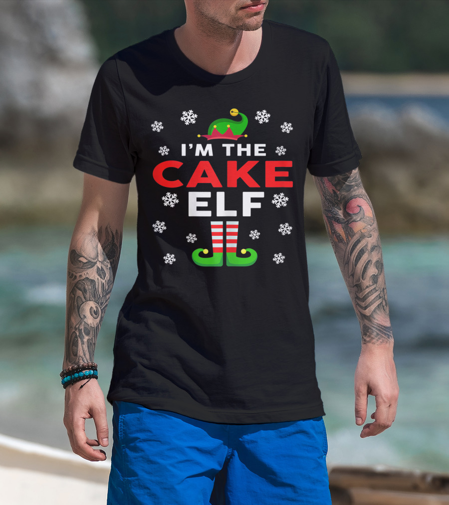 I'm The Cake Elf Snowflakes Festive Green Striped Hat And Shoes T-Shirt
