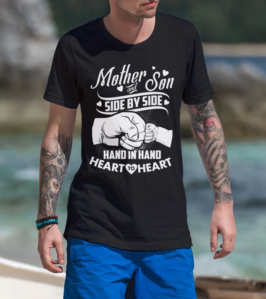 Mother And Son Side By Side Hand In Hand Heart To Heart T-Shirt