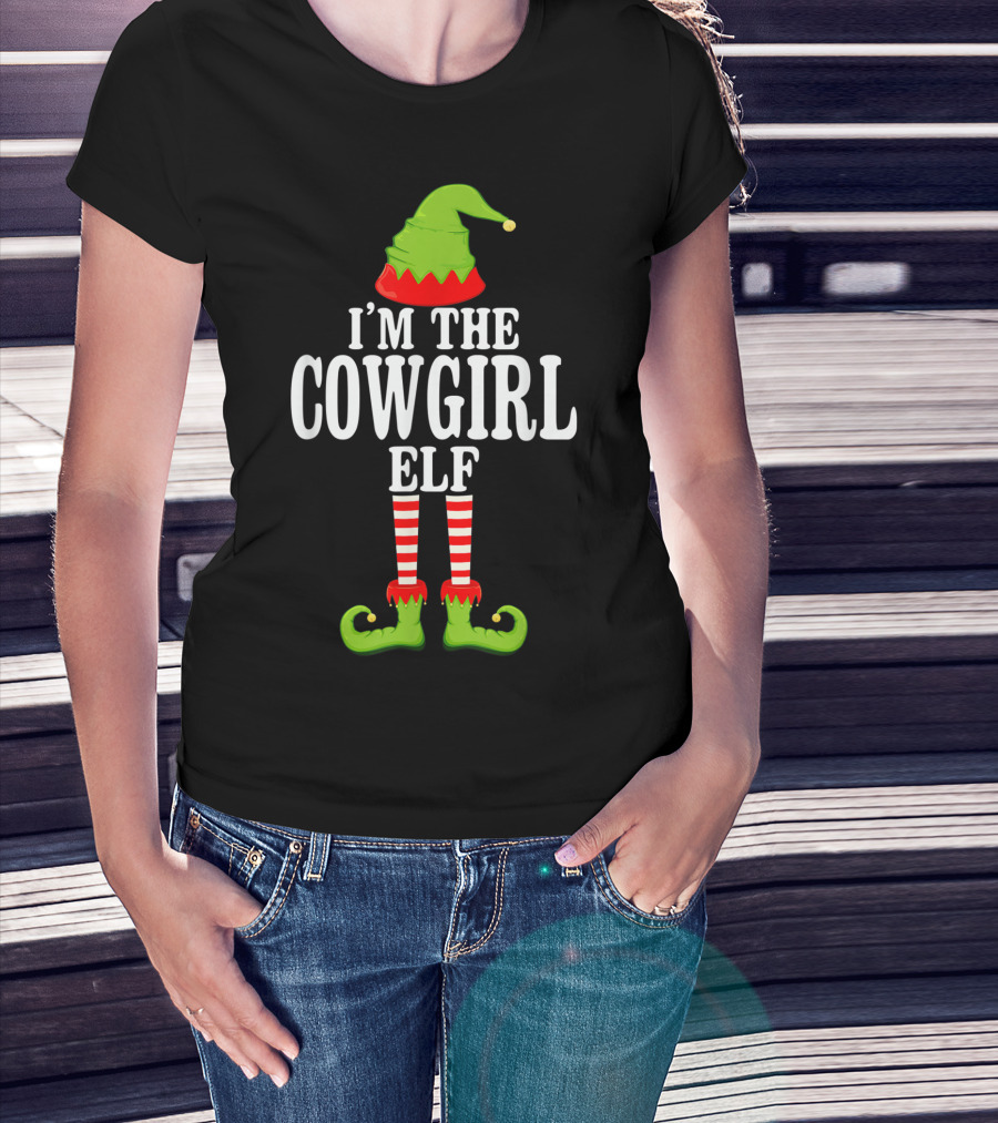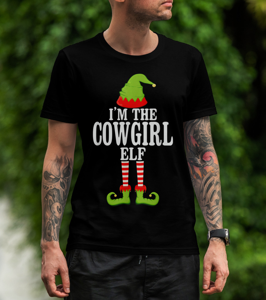 I'm The Cowgirl Elf Christmas Hat And Shoes T-Shirt