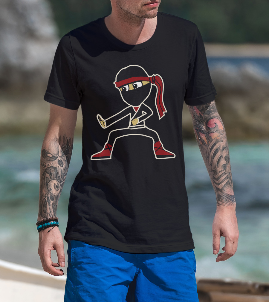 Kids Boys Toddler Cute Ninja Black Mask Red Headband Karate Stance T-Shirt