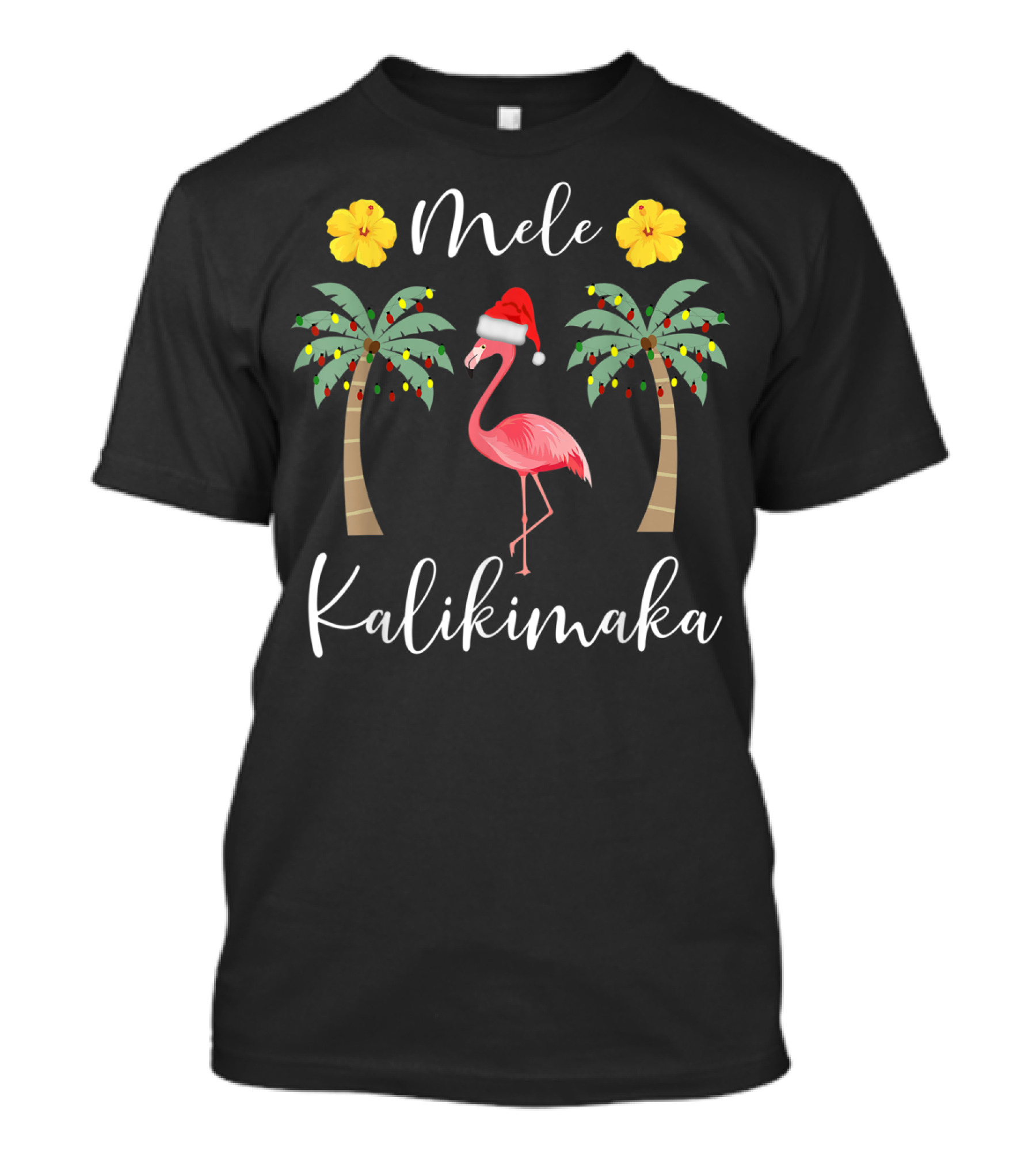 Mele Kalikimaka Flamingo With Santa Hat And Palm Trees Tropical Holiday T-Shirt