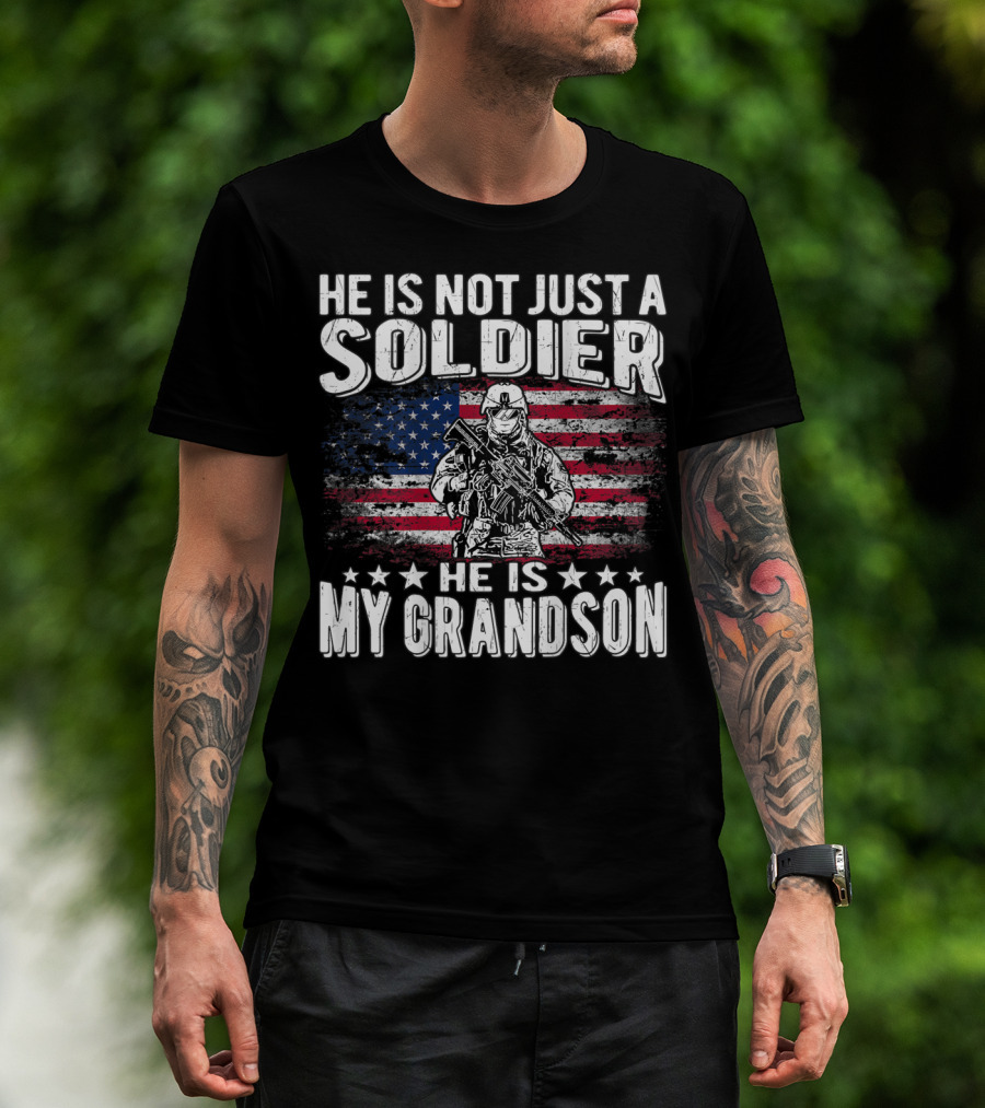 He Is Not Just A Soldier He Is My Grandson American Flag Proud Patriotic T-Shirt