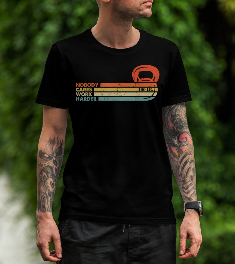 Nobody Cares Work Harder 100 LB Kettlebell Motivational Fitness T-Shirt