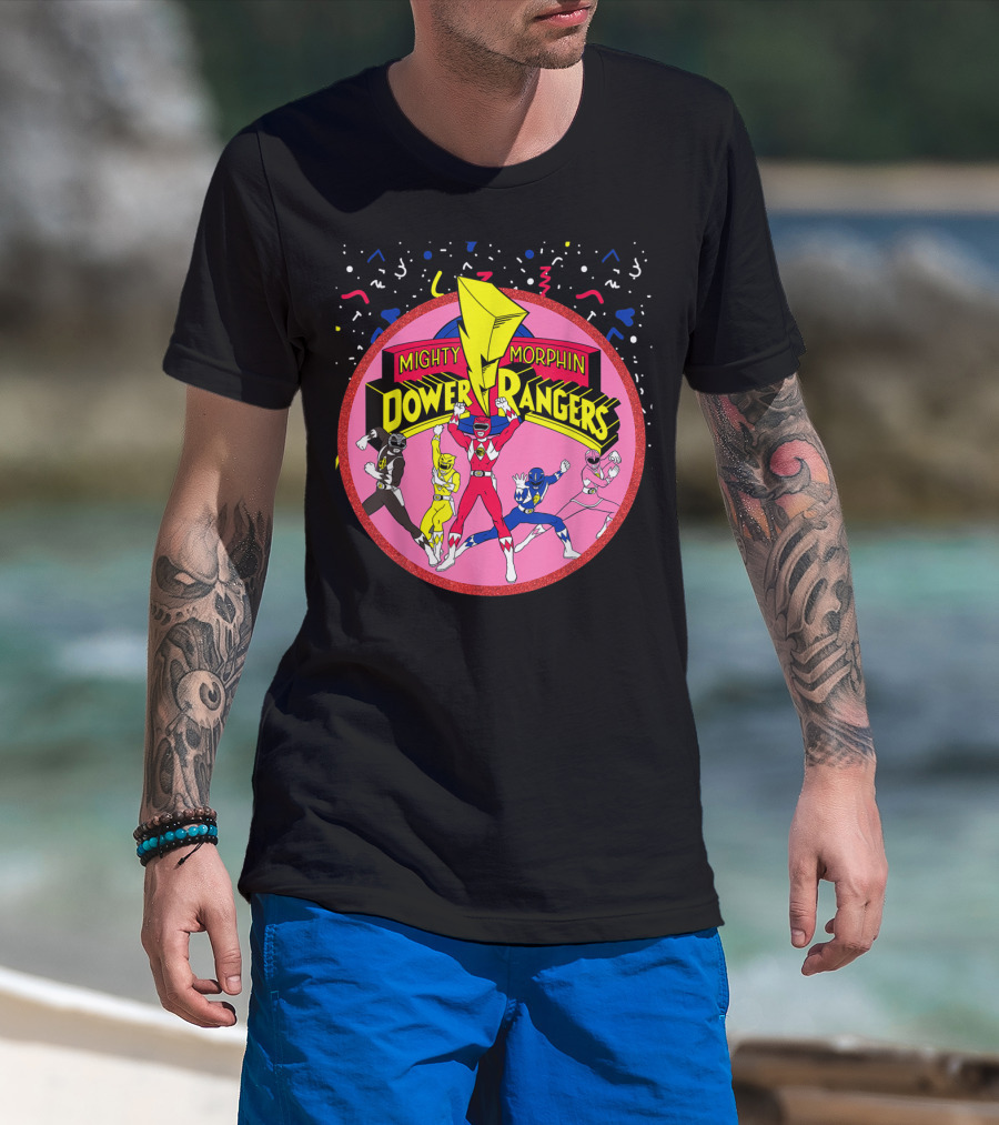 Mighty Morphin Power Rangers Pink Circle With Group T-Shirt