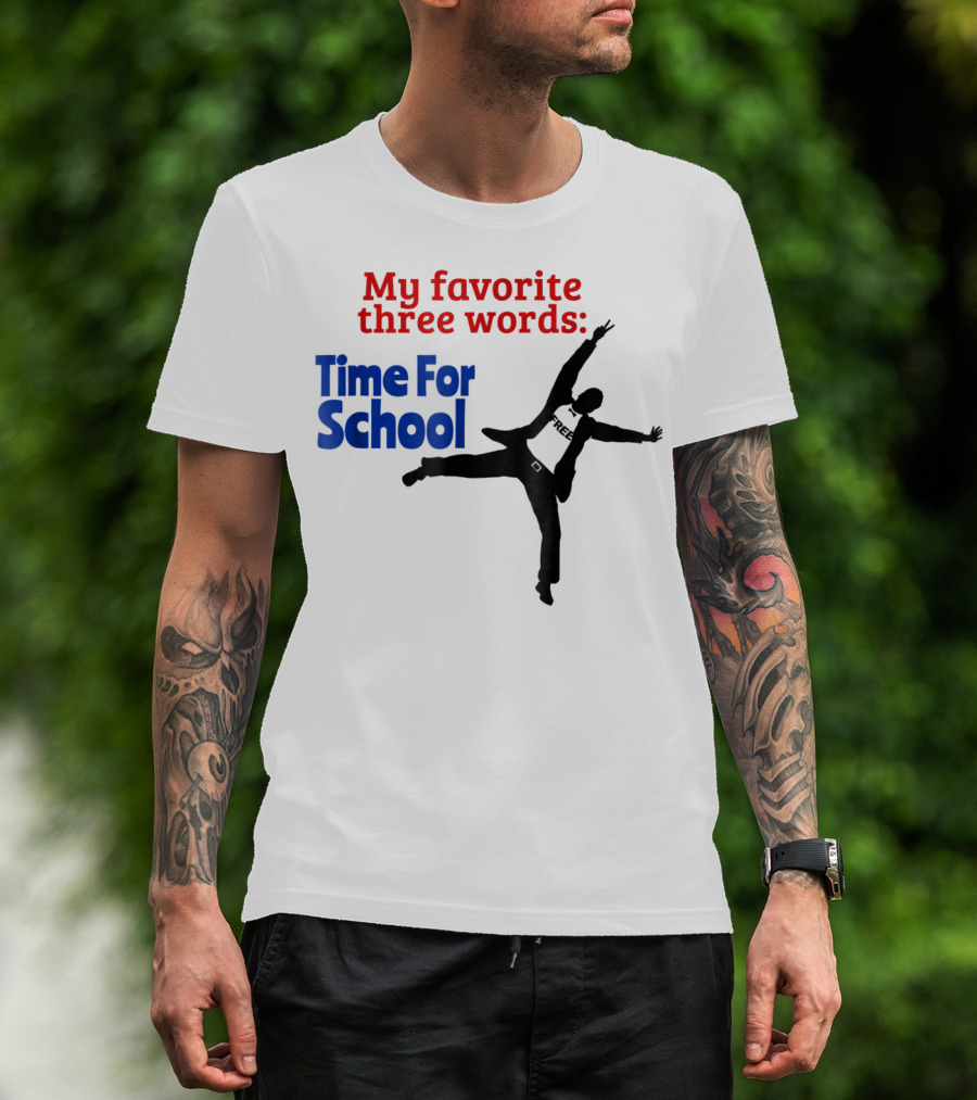 The My Favorite Three Words Time For School Jumping T-shirt is designed for everyday wear and a consistent fit. Fabric is pre-shrunk ring-spun cotton with durable stitching. See the size chart below for exact measurements.