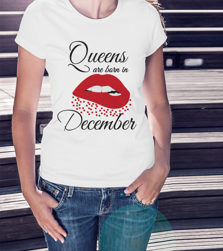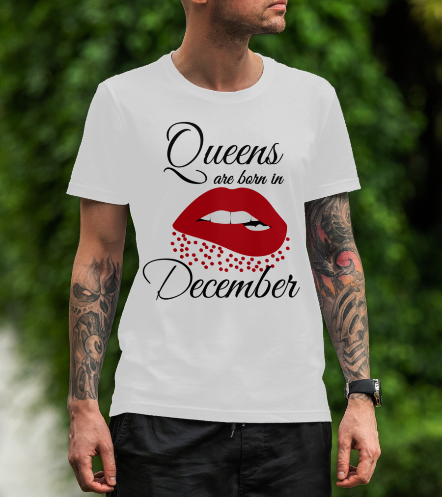 The Queens Are Born In December Bold Red Lips T-shirt is designed for everyday wear and a consistent fit. Fabric is pre-shrunk ring-spun cotton with durable stitching. See the size chart below for exact measurements.