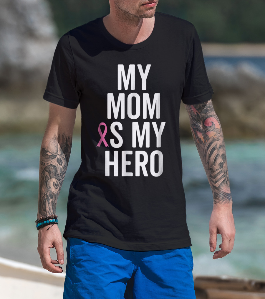 My Mom Is My Hero Breast Cancer Ribbon Awareness T-Shirt