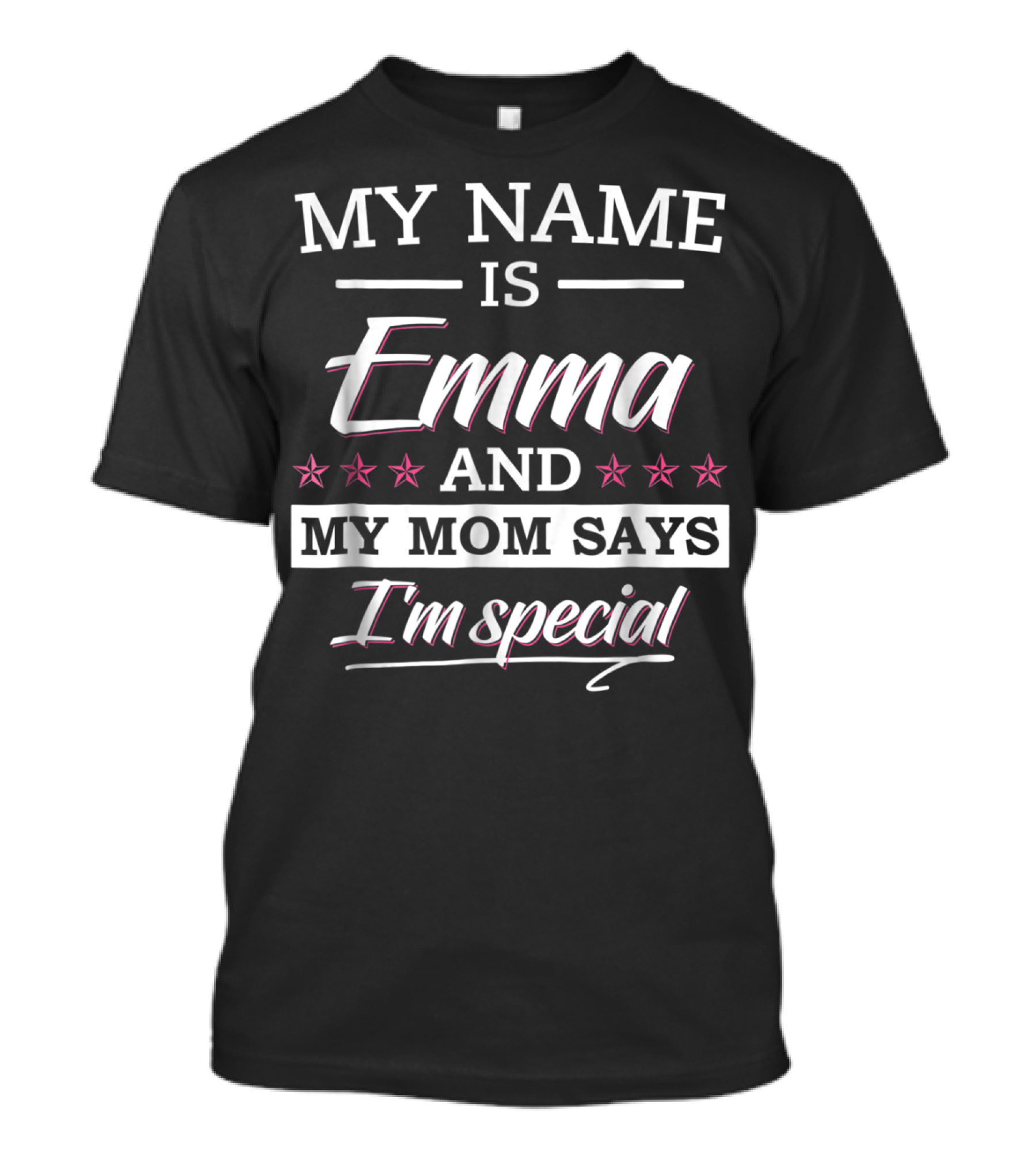 The My Name Is Emma And My Mom Says I'm Special T-shirt is designed for everyday wear and a consistent fit. Fabric is pre-shrunk ring-spun cotton with durable stitching. See the size chart below for exact measurements.