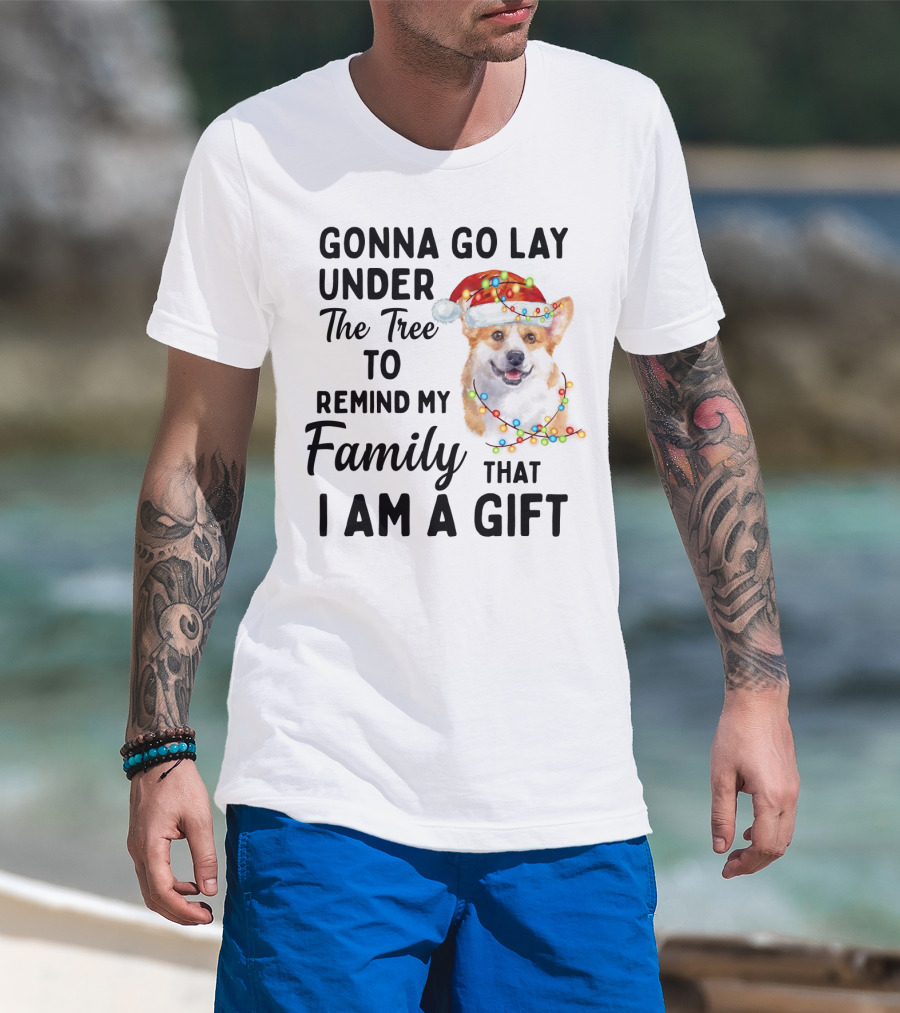 Gonna Go Lay Under The Tree To Remind My Family That I Am A Gift Corgi Christmas Lights Santa Hat T-Shirt