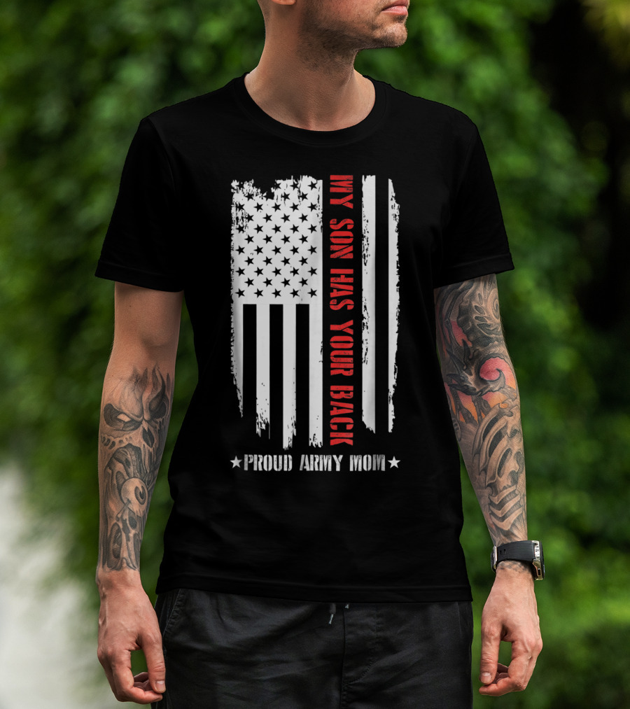 My Son Has Your Back Proud Army Mom American Flag T-Shirt
