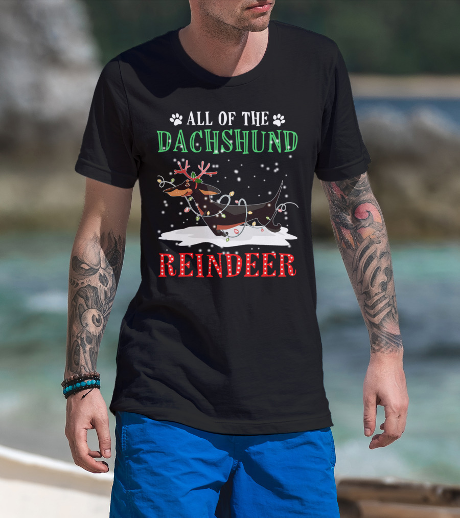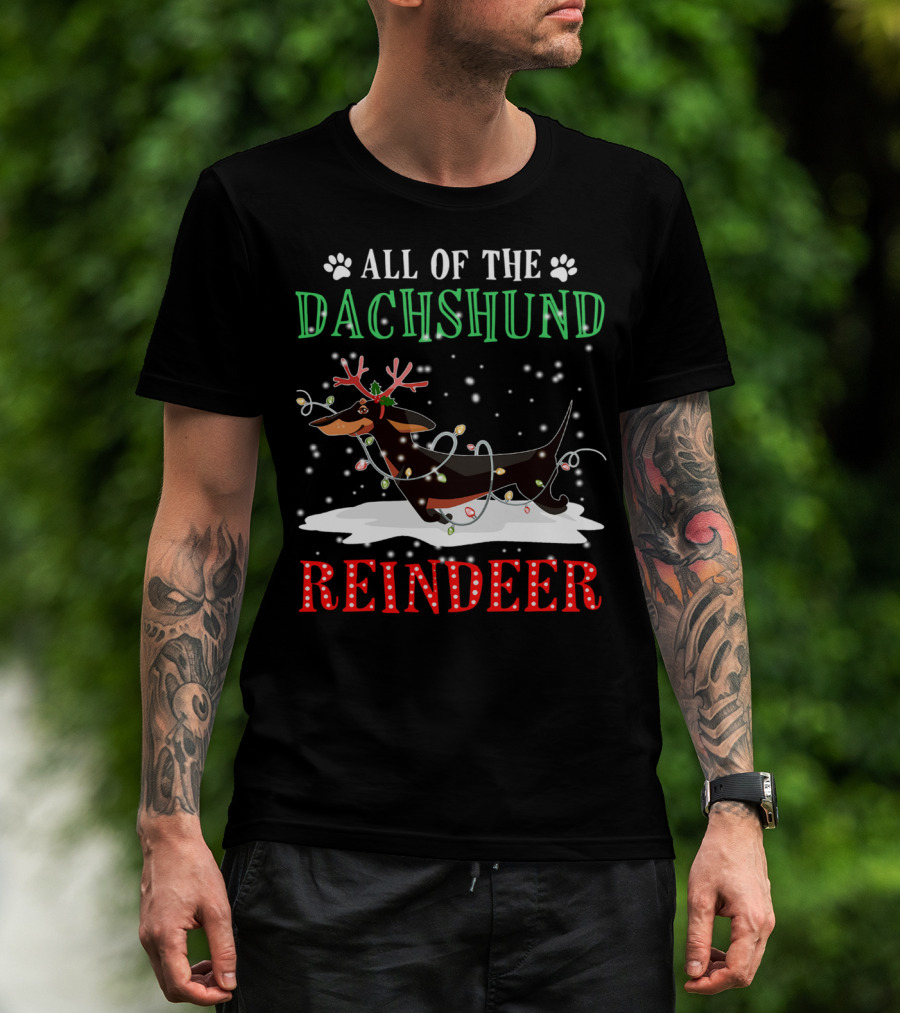 The All of the Dachshund Reindeer T-shirt is designed for everyday wear and a consistent fit. Fabric is pre-shrunk ring-spun cotton with durable stitching. See the size chart below for exact measurements.