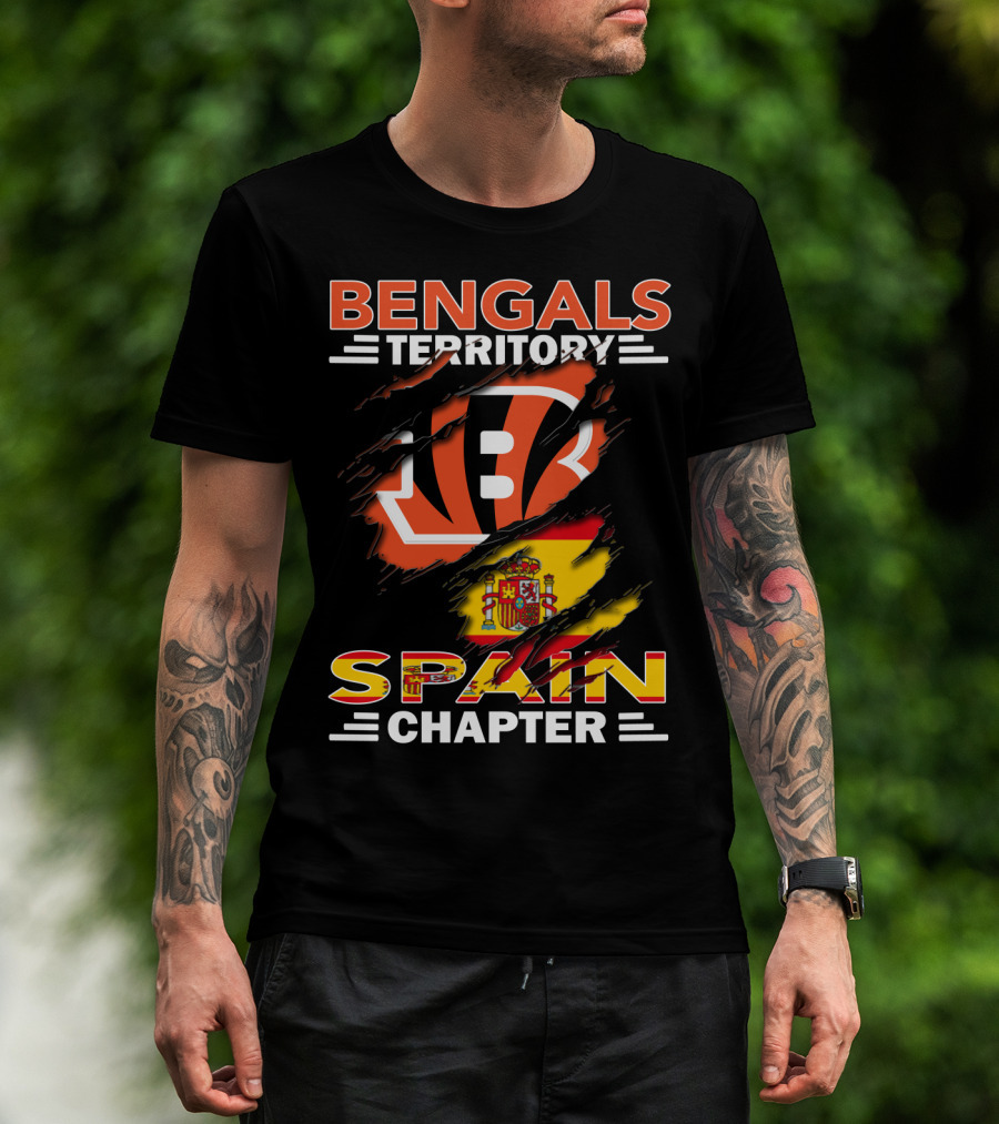 Bengals Territory Spain Chapter Logo With Spanish Flag Background T-Shirt