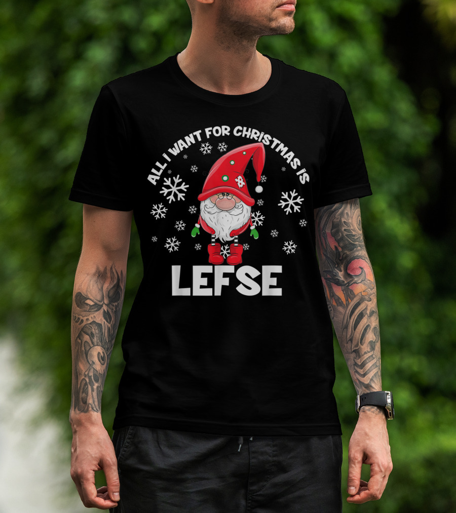 All I Want For Christmas Is Lefse Santa With Snowflakes T-Shirt