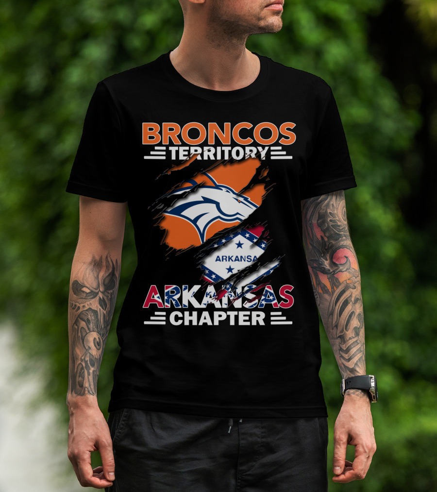 Broncos Territory Arkansas Chapter Logo With Horse And Flag Graphics T-Shirt