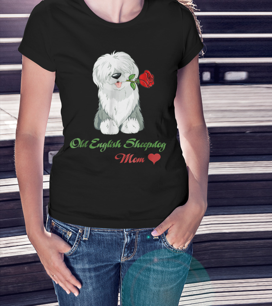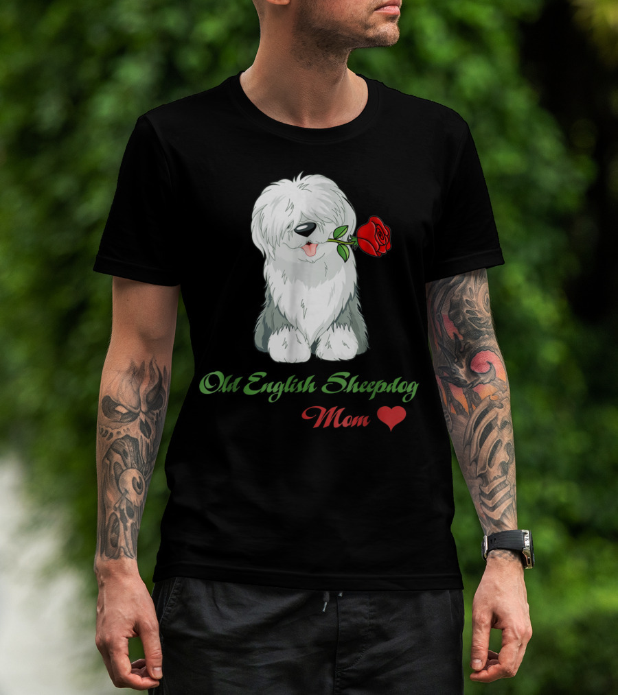 Old English Sheepdog Mom Heart Rose T-Shirt