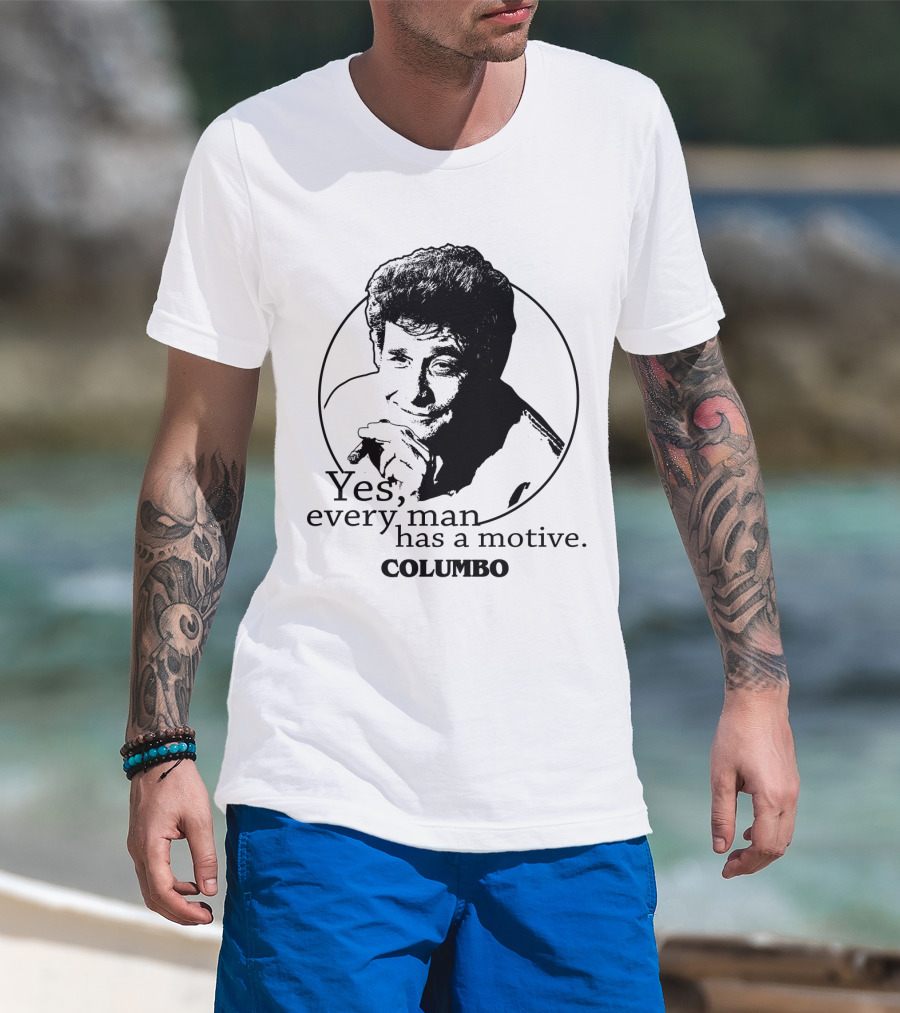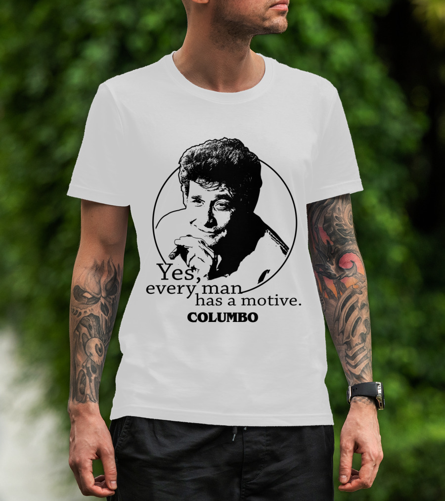 The Yes Every Man Has a Motive Columbo T-shirt is designed for everyday wear and a consistent fit. Fabric is pre-shrunk ring-spun cotton with durable stitching. See the size chart below for exact measurements.