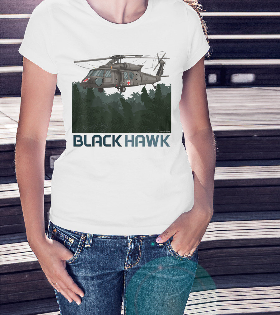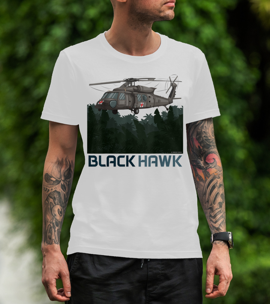 Black Hawk Helicopter Military Jungle Scene T-Shirt