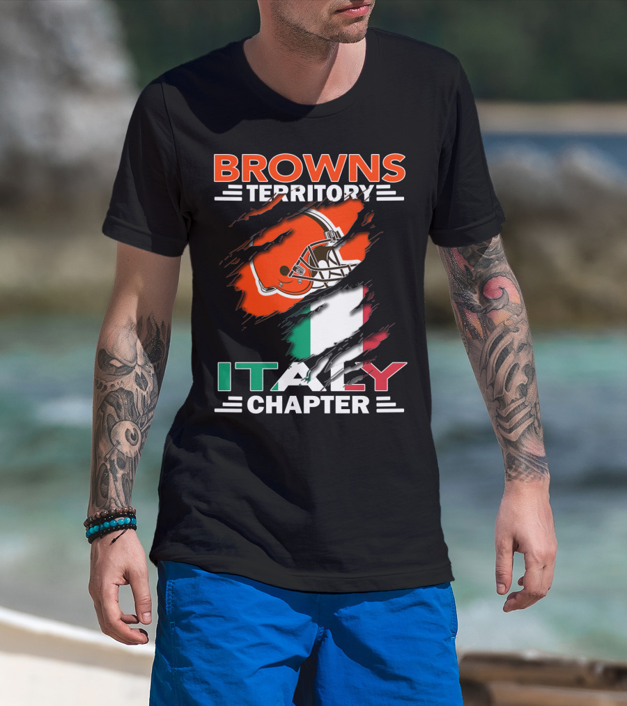 Browns Territory Italy Chapter Cleveland Football Helmet And Italian Flag T-Shirt