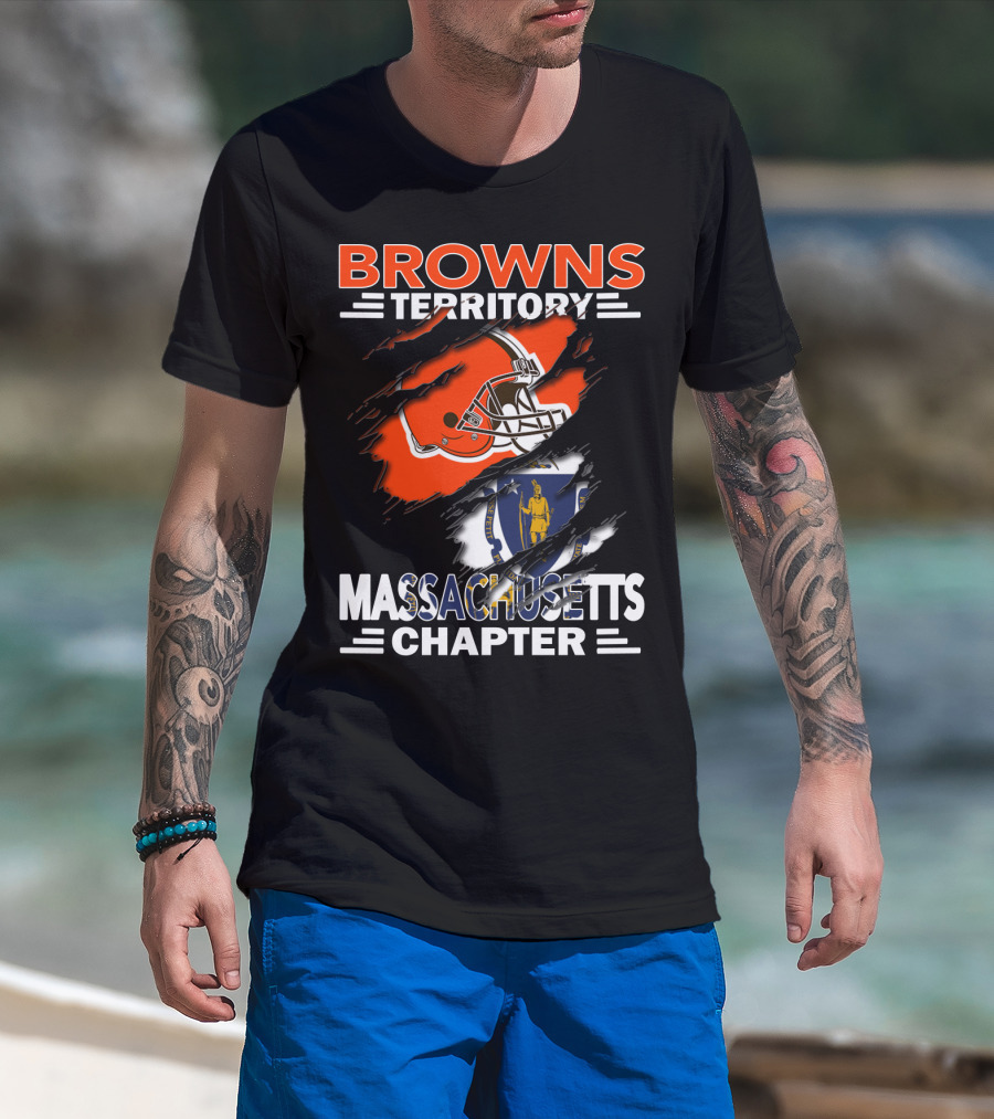Browns Territory Massachusetts Chapter Helmet And Flag T-Shirt