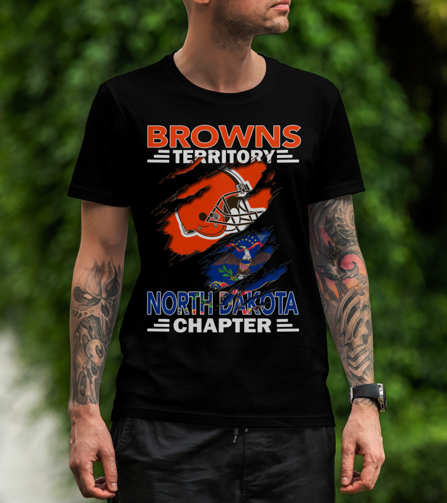 Browns Territory North Dakota Chapter Football Helmet And State Flag T-Shirt