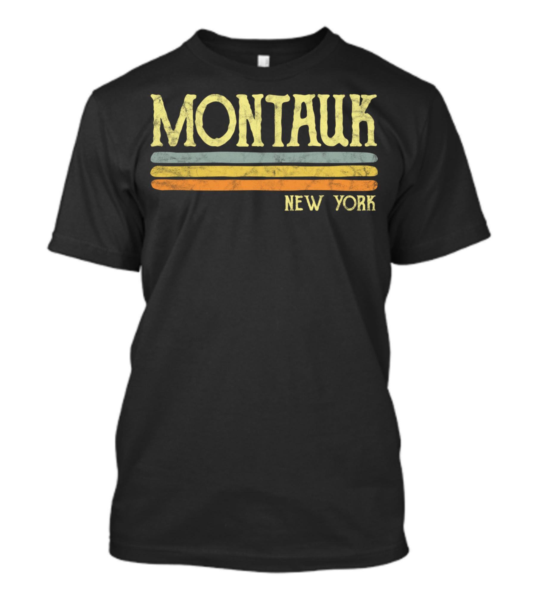 The Montauk New York Vintage Style Retro Stripes T-shirt is designed for everyday wear and a consistent fit. Fabric is pre-shrunk ring-spun cotton with durable stitching. See the size chart below for exact measurements.