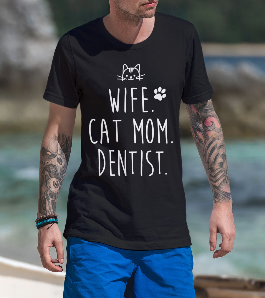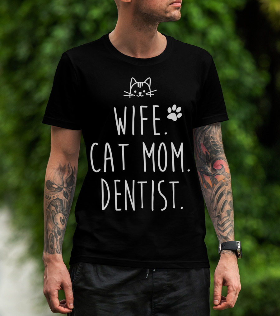 Wife Cat Mom Dentist Women51 Cat Face Paw Prints T-Shirt